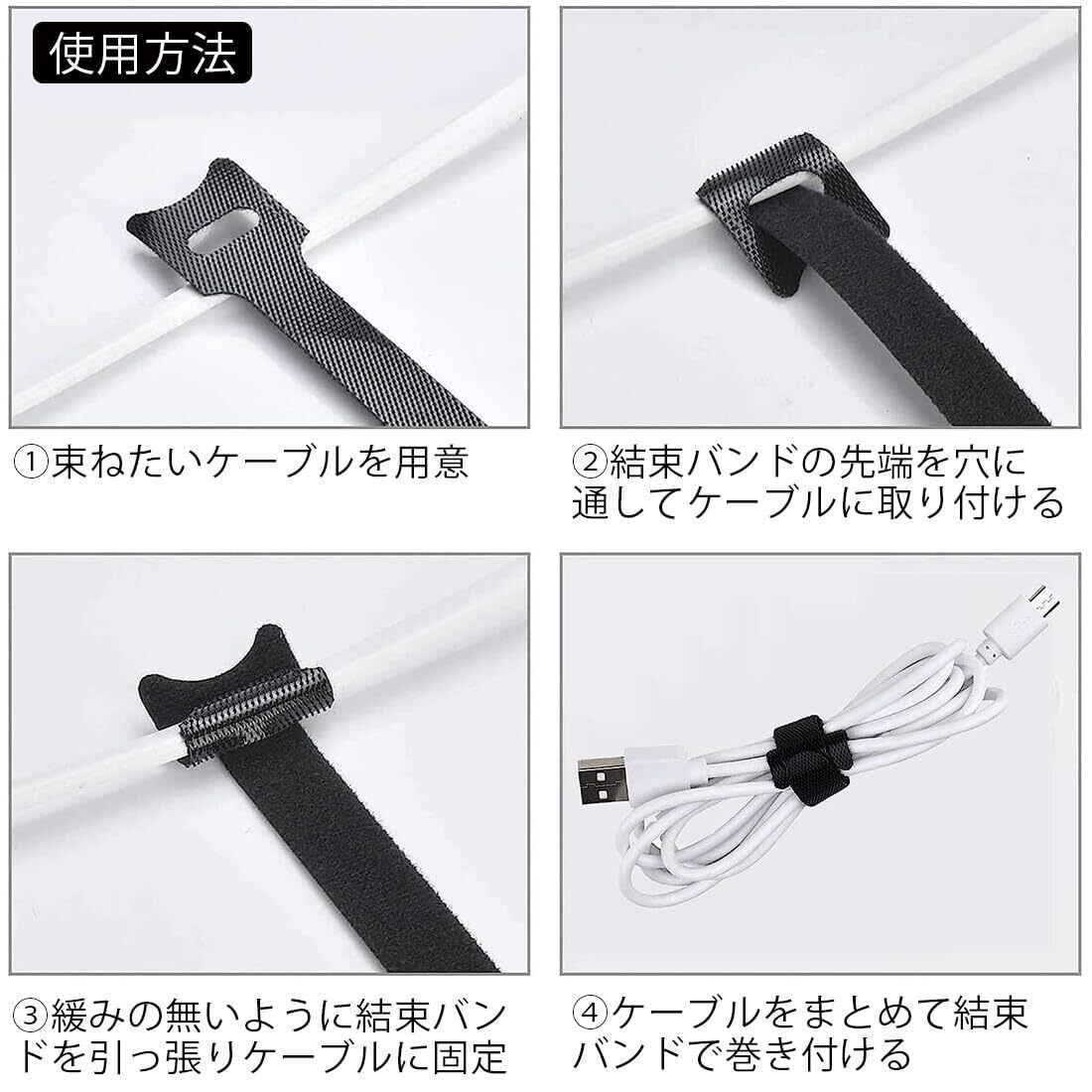 巻くだけでコード類を結束!!ケーブル等に取り付け可能な両面タイプの結束バンドです。
