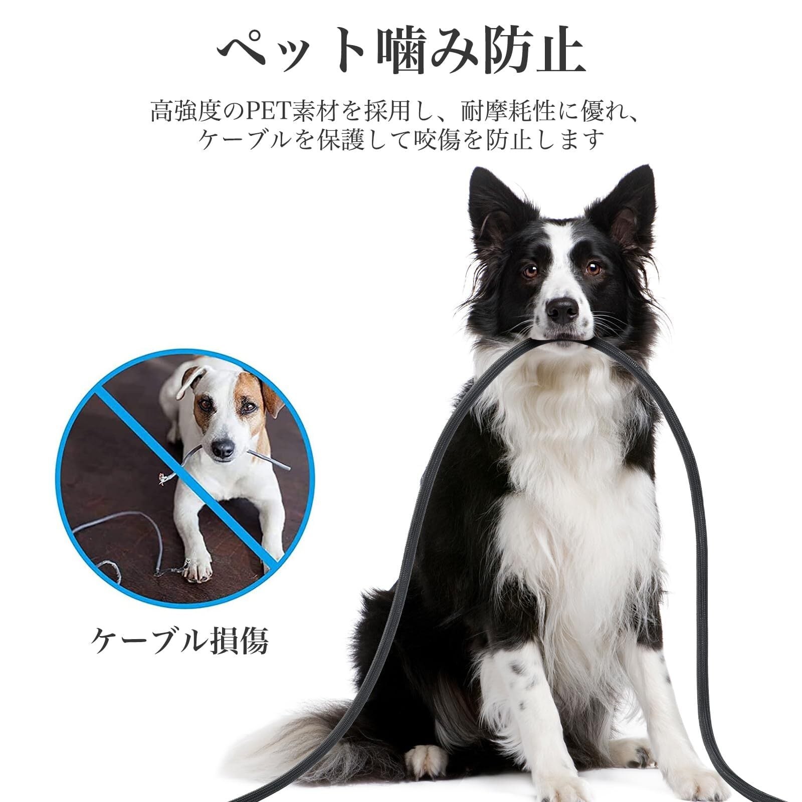 【耐熱&耐摩耗性】AiQInu 配線カバーは高強度のPET素材を採用して作られています、難燃グレード:UL94-V2、最大240度を耐えられます、優れた耐摩耗性はペットの口からケーブルをしっかり守れます。