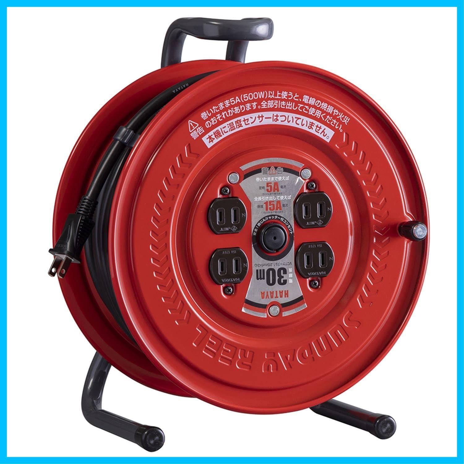 ハタヤ (HATAYA) コードリール 屋内用 100V型 コード30m 太さ1.25㎟ 標準型 コンセント4個 コンセント防塵キャップ 前面フラットパネル 家庭用 工場用 建設現場 サンデーリール S-30