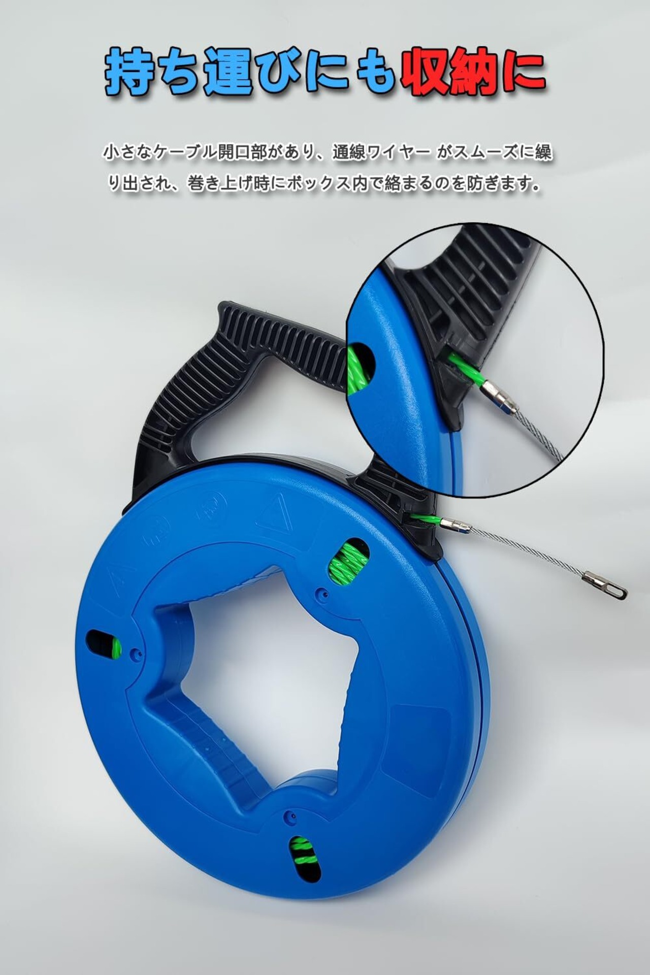 【高強度FRP素材で曲げても折れない!】材質:PET樹脂 長さ:40m ロッド線径:約4.5mm セット内容:収納ケース付き通線ワイヤー×1点