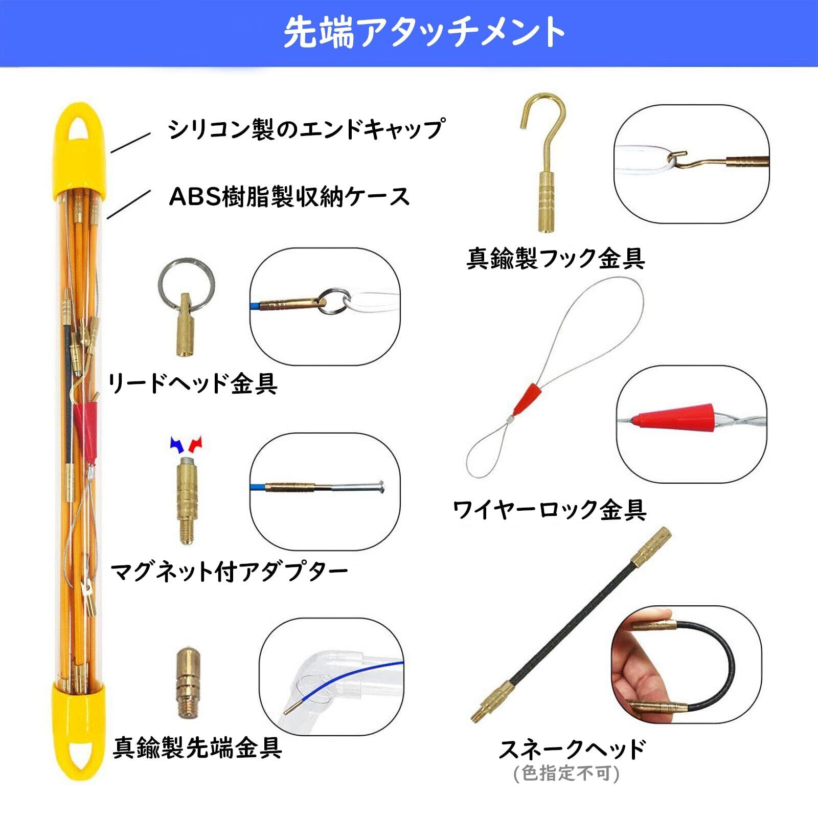通線ワイヤー Φ4mm ロッド継ぎ足し式 1m×10本 通線ロッド ジョイントライン 先端アタッチメント付属 通線工具 FL401 (1m×10本)