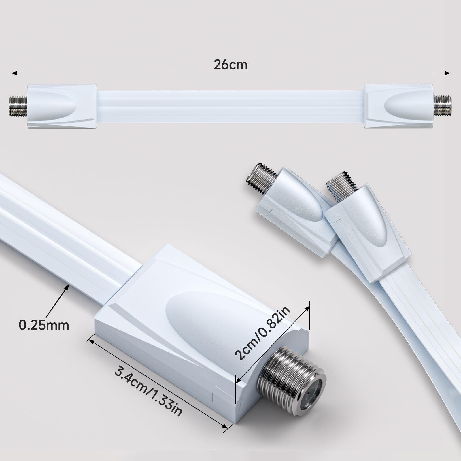 Cleqee 26cm 1本 同軸フラットケーブル 隙間ケーブル 白い フラットアンテナケーブル Fメス - メスタイプ同軸コネクタワイヤ 折り曲げ可能 テレビ用 延長 引き込み用 地デジ/BS/CSケーブルなど対応フラットコード サッシ/ベランダ/ドア用