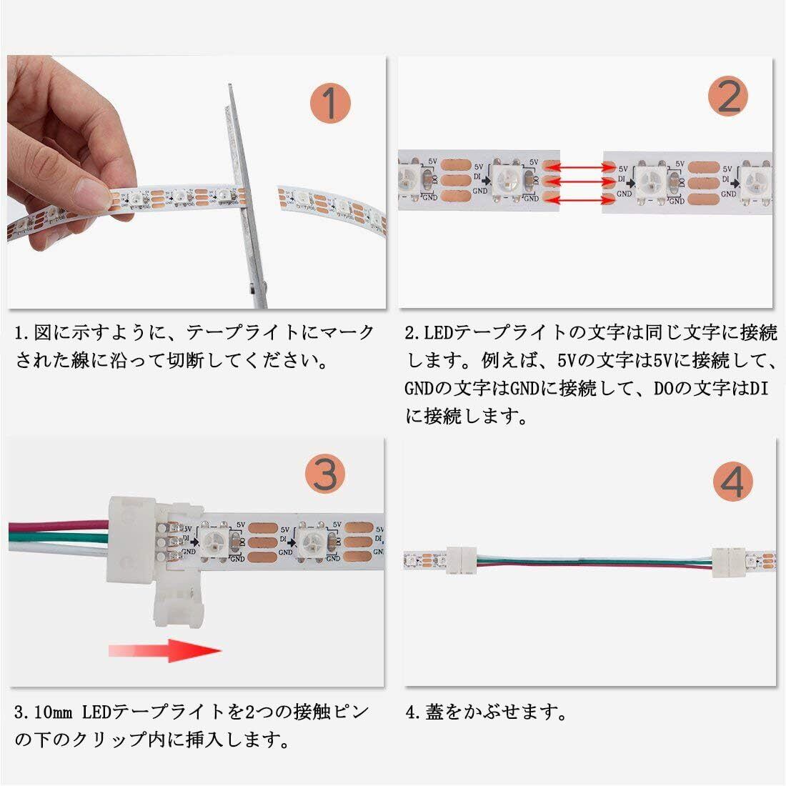 BTF-LIGHTING 3ピンコネクター 10個10mm幅のデュアルエンド 15cm延長用ケーブルコネクター LEDテープライト 3mmピッチ 柔軟なWS2812B WS2811 SK6812のストリップ簡単接続 半田不要 DIYできなコネクター