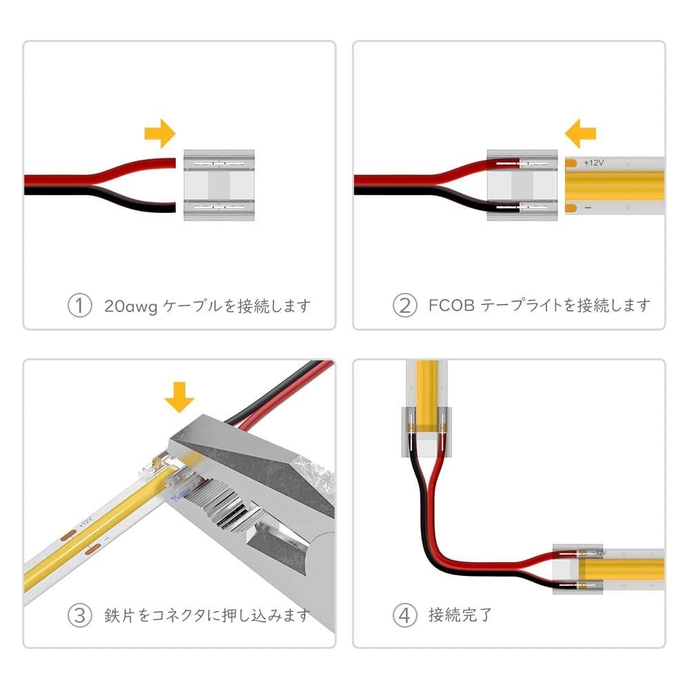 BTF-LIGHTING 2PIN コネクター FCOB COB 10mm コネクター 14個透明なコネクター 15cm長さ 20AWG延長コードケーブル FCOB FOB LEDテープライト用の透明なミドルカバーコネクター 半田不要 テープライトまたはケーブルに直接接続可能