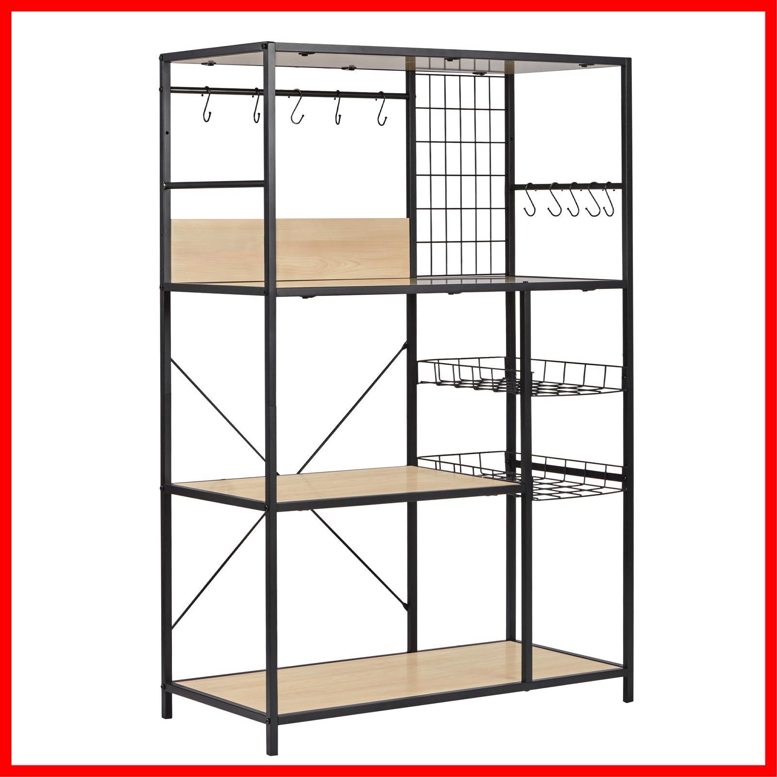 【充実した収納力】このレンジラックは三段の大きな天板があり、電子レンジはもちろん、キッチン家電や炊飯器などすっきり収納できます。2つのワイヤーバスケットは食器や調味料の収納に便利です。また使い勝手の多目的なフックが10個追加付属されています。キッチンスペースを最大限に活用できます。