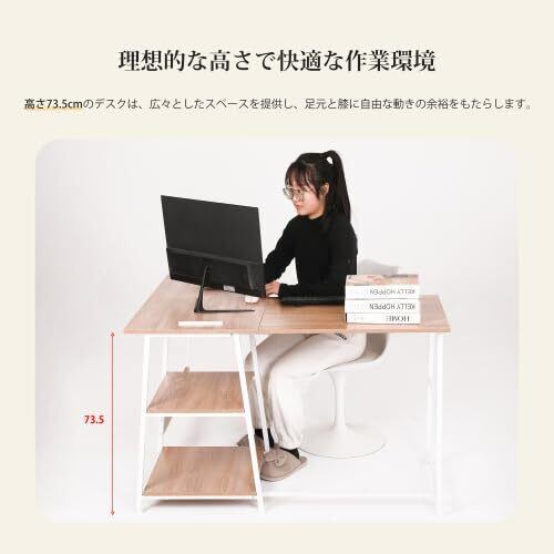 【理想的な高さで快適な作業環境】高さ73.5cmのデスクは、広々としたスペースを提供し、足元と膝に自由な動きの余裕をもたらします。これによって、快適な座り姿勢を保つことができ、作業時の集中力が向上します。この理想的な高さは楽しみながら仕事に没頭できる環境を提供します。