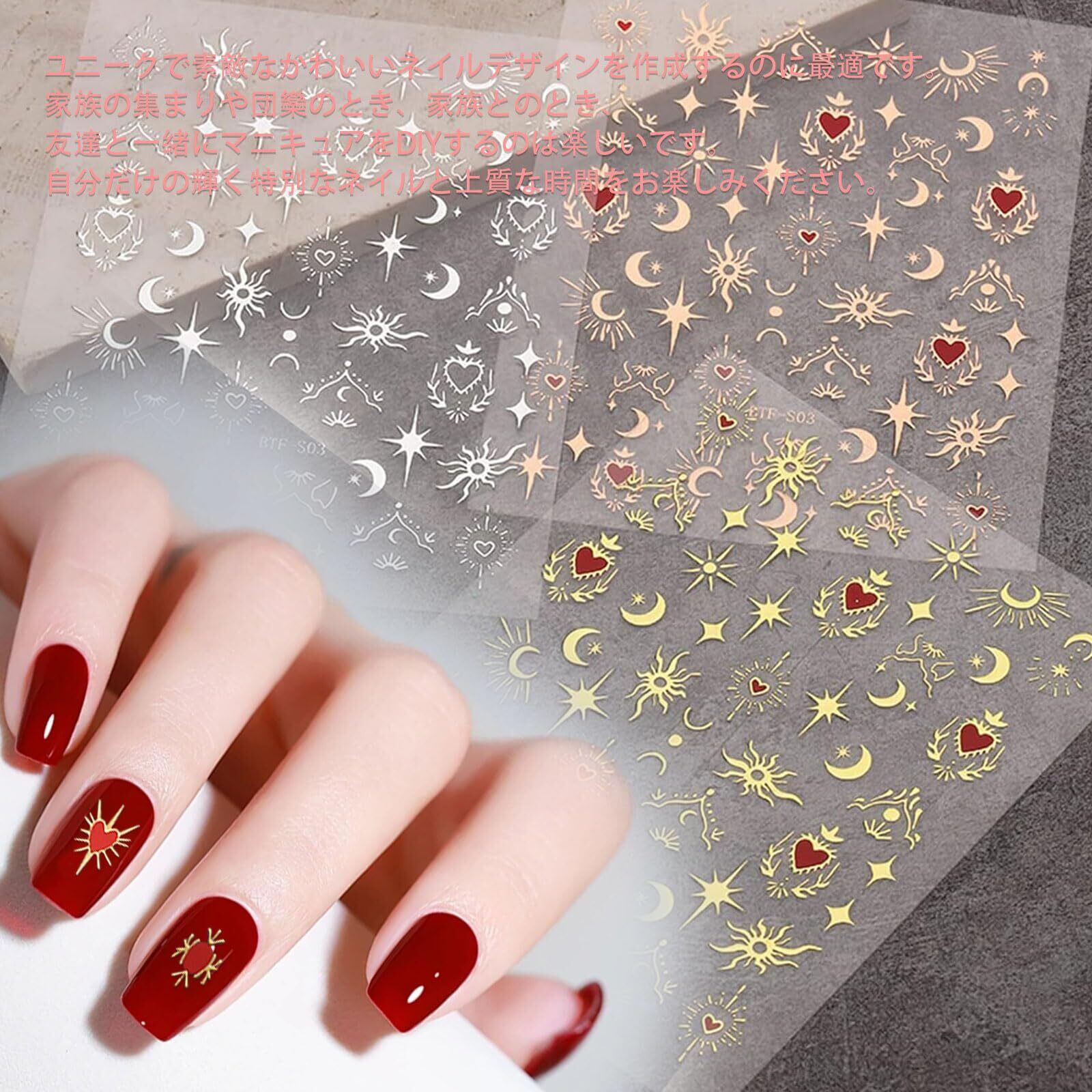 【2022最新】ネイルシール 12枚セット 3D 可愛い ハート 星 月 太陽 ネイルパーツ シール 貼るだけ おしゃれ ネイルステッカー ジェルネイル ネイルアートシール デコパーツ バレンタインデー クリスマス (ゴールド+シルバー) | metta