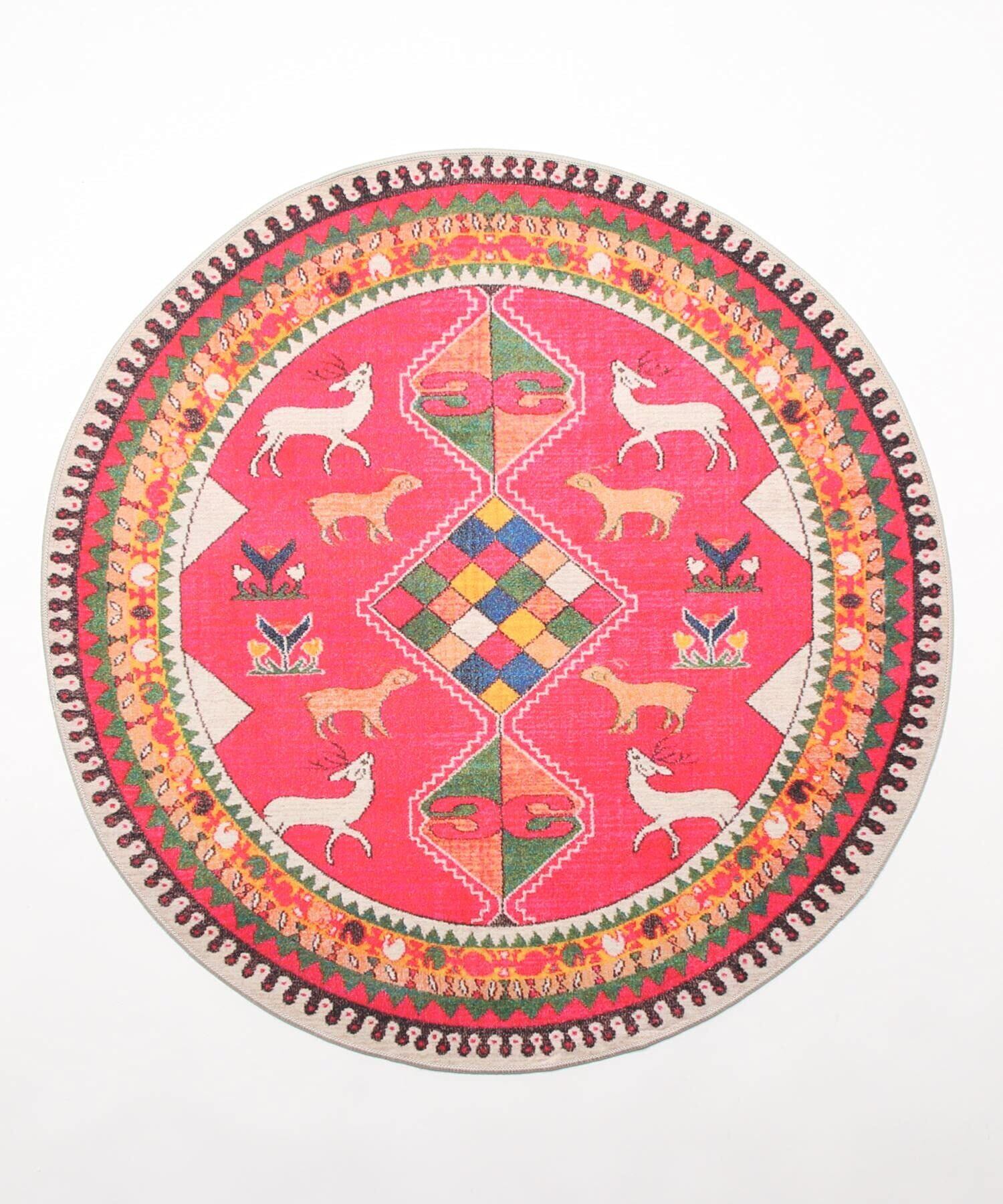 エキゾチックでオリエンタル、絵画のようなデザインたちの円形マット。