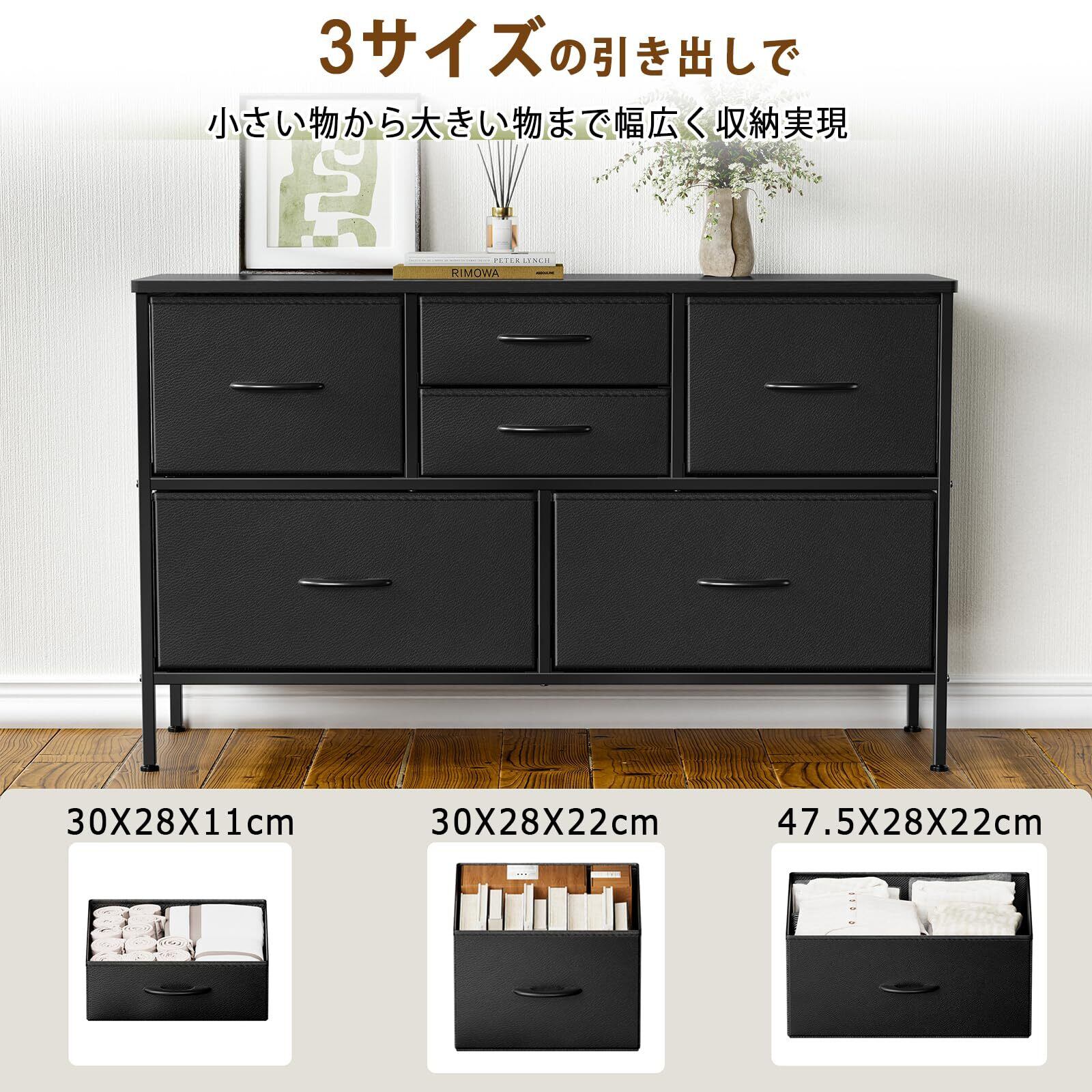 タンス ローチェスト テレビ台 収納棚 リビング収納 衣装・衣類収納ケース キッズ・ベイビー・子ども用ロータイプ ワイドチェスト幅100 TV台 一人暮らし おしゃれ(高防水性皮革 ブラック)