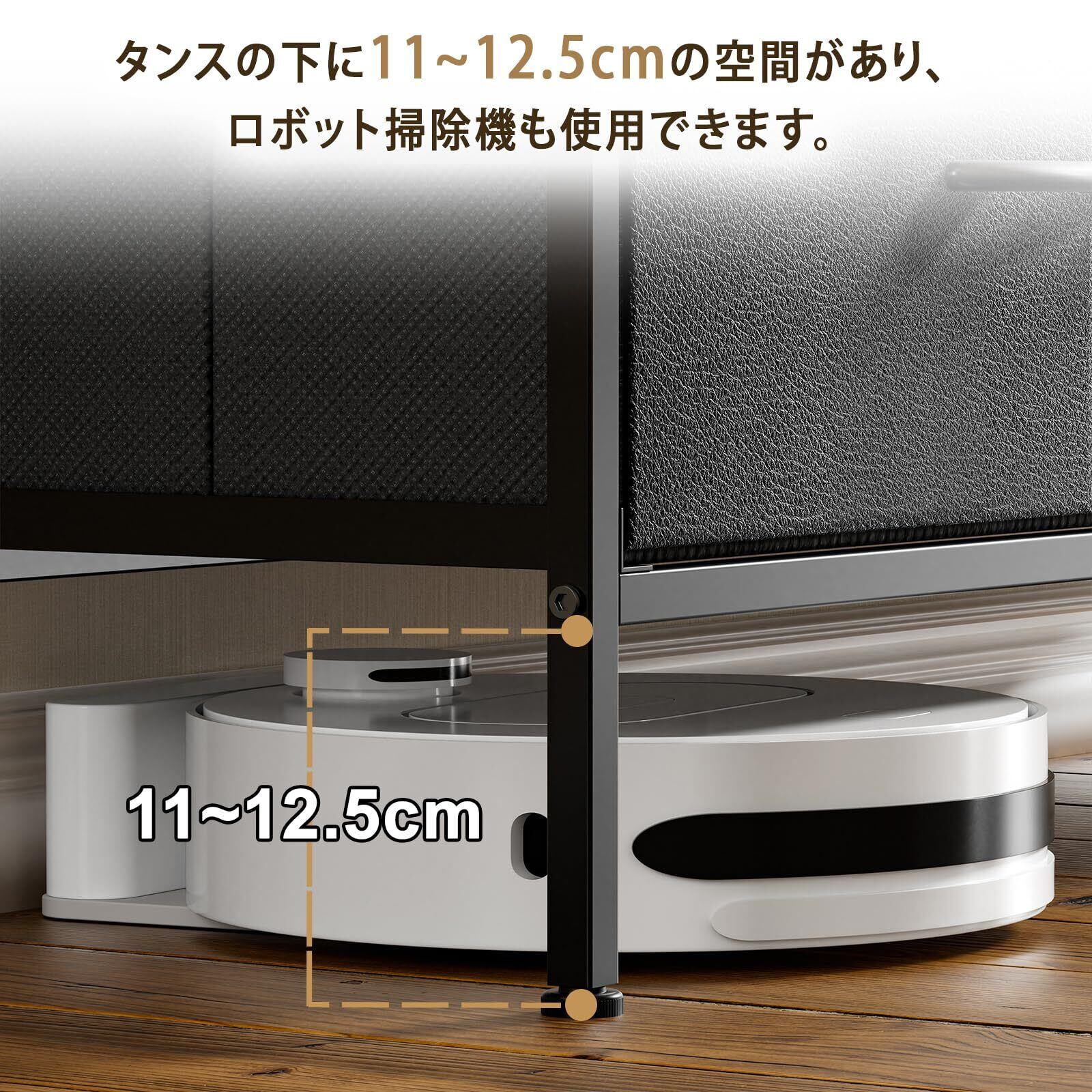 【こだわりの素材&細心な仕様設計】天然木より作られた木製取手やお部屋に温もりを添える木目調天板棚を使用しており、天板の角丸や床より10CMの高さでロボット掃除機もスムーズに通せます!