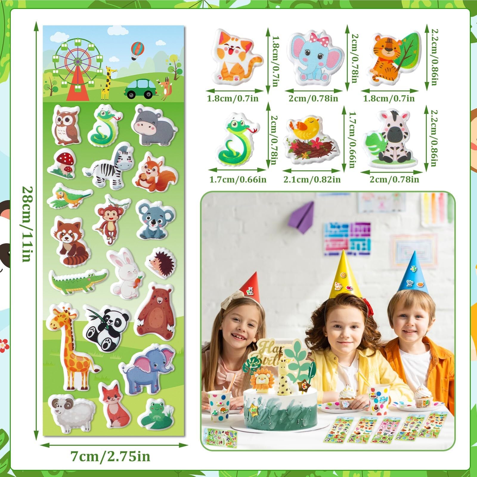 多様なデザイン:これのシールセットは犬、猫、パンダ、サル、ゾウなど、多様な動物に基づいて、様々な可愛い絵柄にデザインされました。漫画のスタイルと鮮やかなカラーで、子供に好まれやすいです
