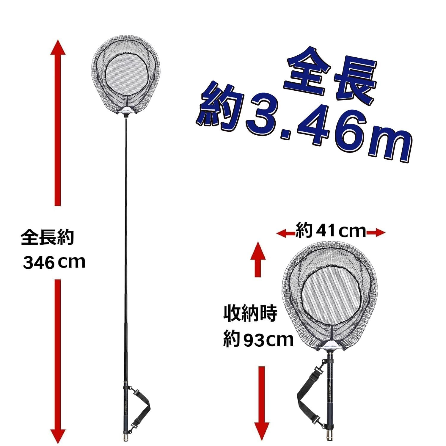 【玉の柄】全長:約3.0M、仕舞寸法:約44cm、継数:9本、先経14mm/元径32mm、柄の材質:90%カーボン。●玉の柄+たも網セット