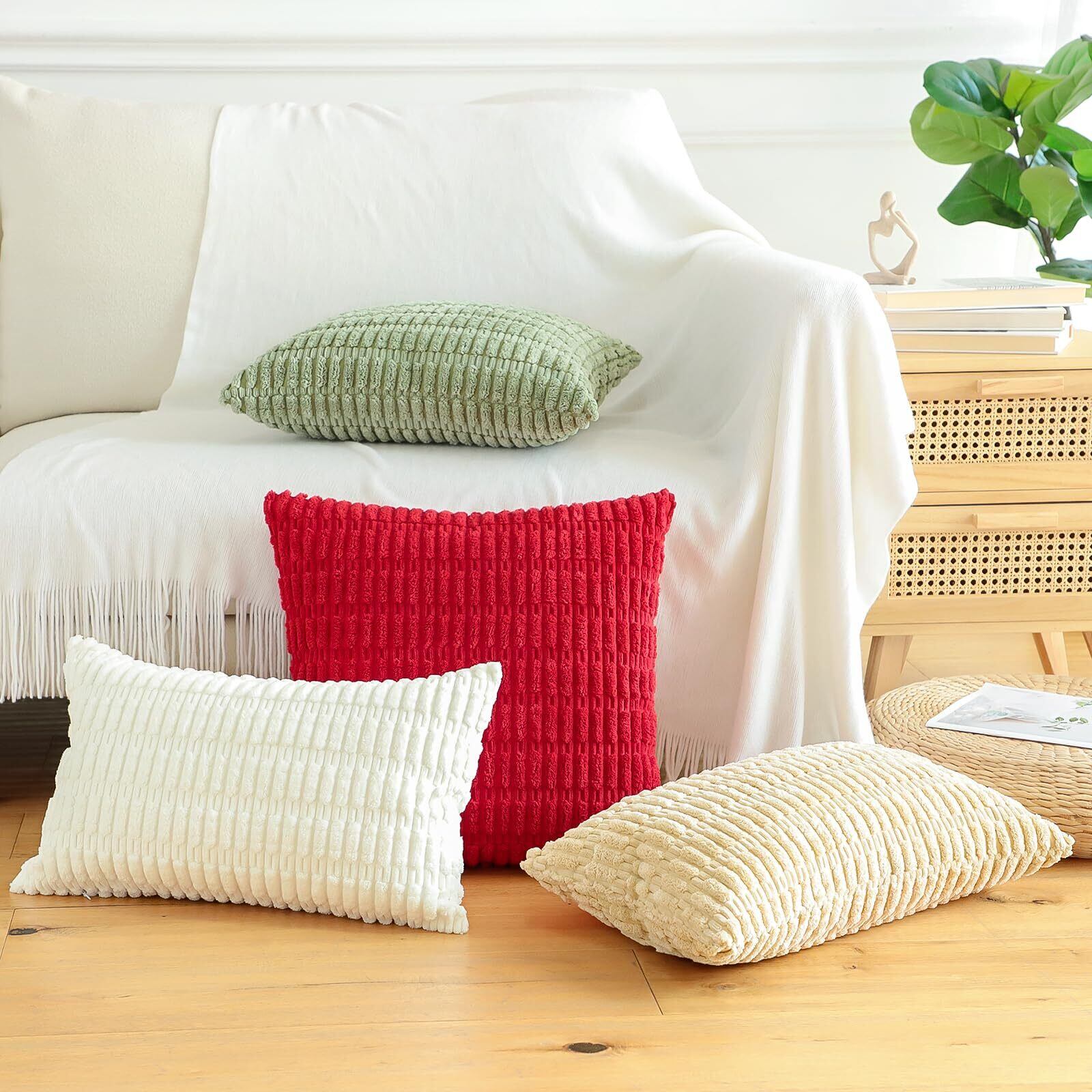 Otostar クッションカバー 45x45cm 北欧 2枚セット コールテン 麦の穂 おしゃれ 可愛い モダン ファスナー インテリア ソファー用クッションカバー(45x45 オフホワイト)