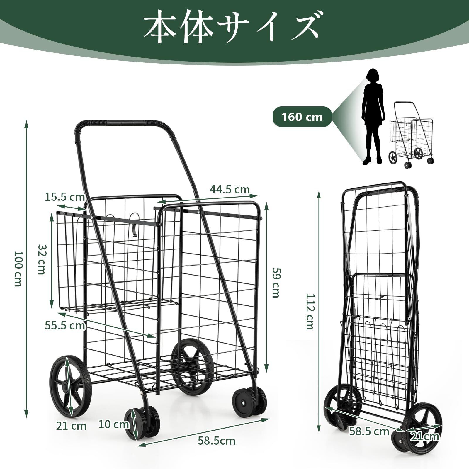 【数量限定】GIANTEX ショッピングカート 折り畳み 4輪 耐荷重40kg ショッピングキャリー 買い物カート 大容量 収納便利 横押し 多用途 アウトドア 高齢者 プレゼント 荷物運搬 引越し 買い物 キャン 釣り ピクニックに最適 (L-ブラック) | metta