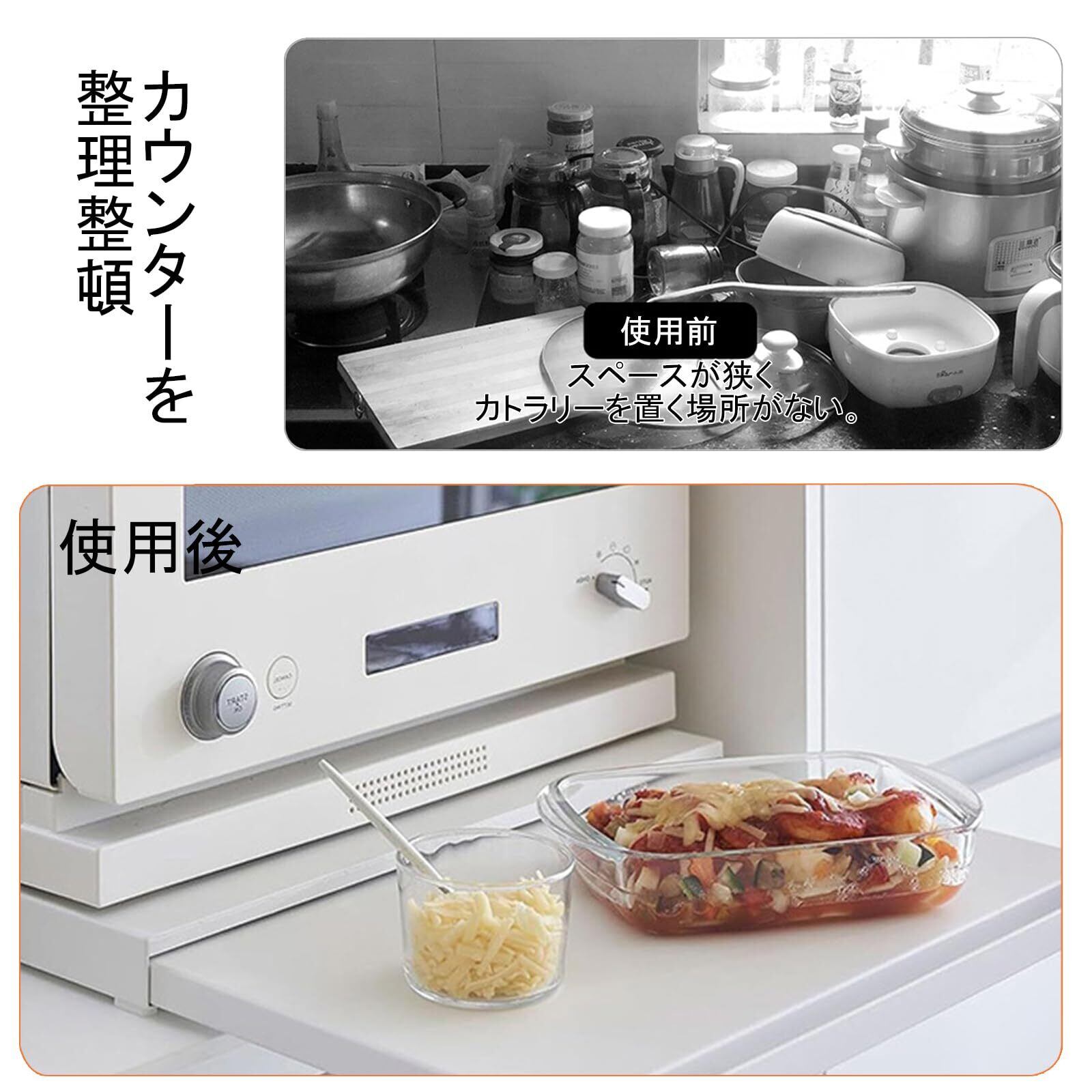 キッチン家電下 スライドテーブル 引き出し レンジ下 収納 レンジ台 炊飯器 スライドテーブル 狭いキッチン 調理スペース 拡張 薄型 完成品 簡単設置 ストッパーのみ要取付 約幅47×奥行36-62×高さ4cm (白)