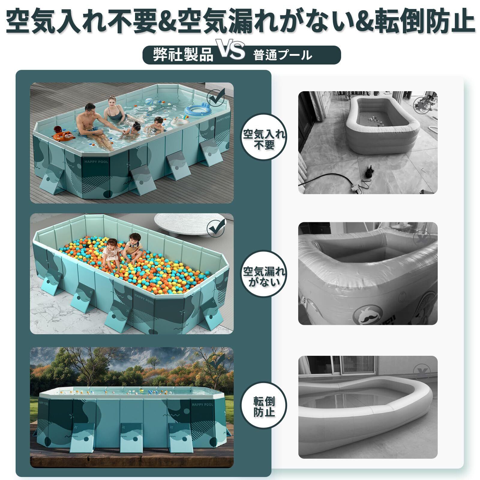LUNING 【新改良 非膨張式】プール 大型 空気入れ不要 ビニールプール 子供用 家庭用 簡易 折りたたみ 厚み 強い耐荷重 組み立て不要 収納便利 耐摩擦 無臭 屋内/屋外用 水遊び 猛暑対策 日本語説明書付き(外径260*165*50CM内径225*125*50CM)