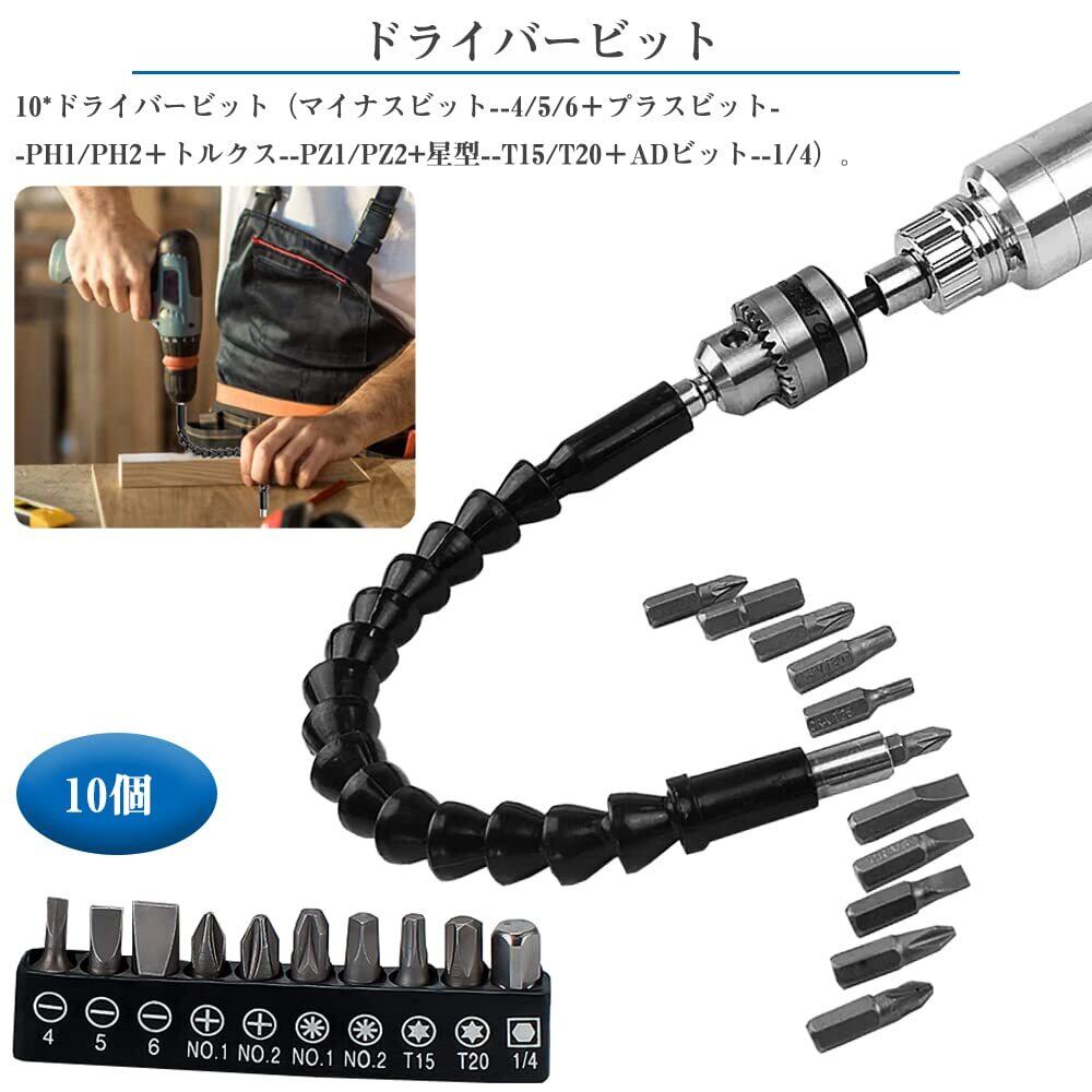 【在庫セール】フレキシブルシャフト 接続 工具 3点セット 105度直角ドリル&ドリルビット 六角ドライバードリル 多機能 ネジ締め 穴あけ コンピュータケース/電気キャビネット/家具/家電製品 DIY ビット 電動 ハードウェアツールドリルアクセサリ(ドライバービット10個) | metta
