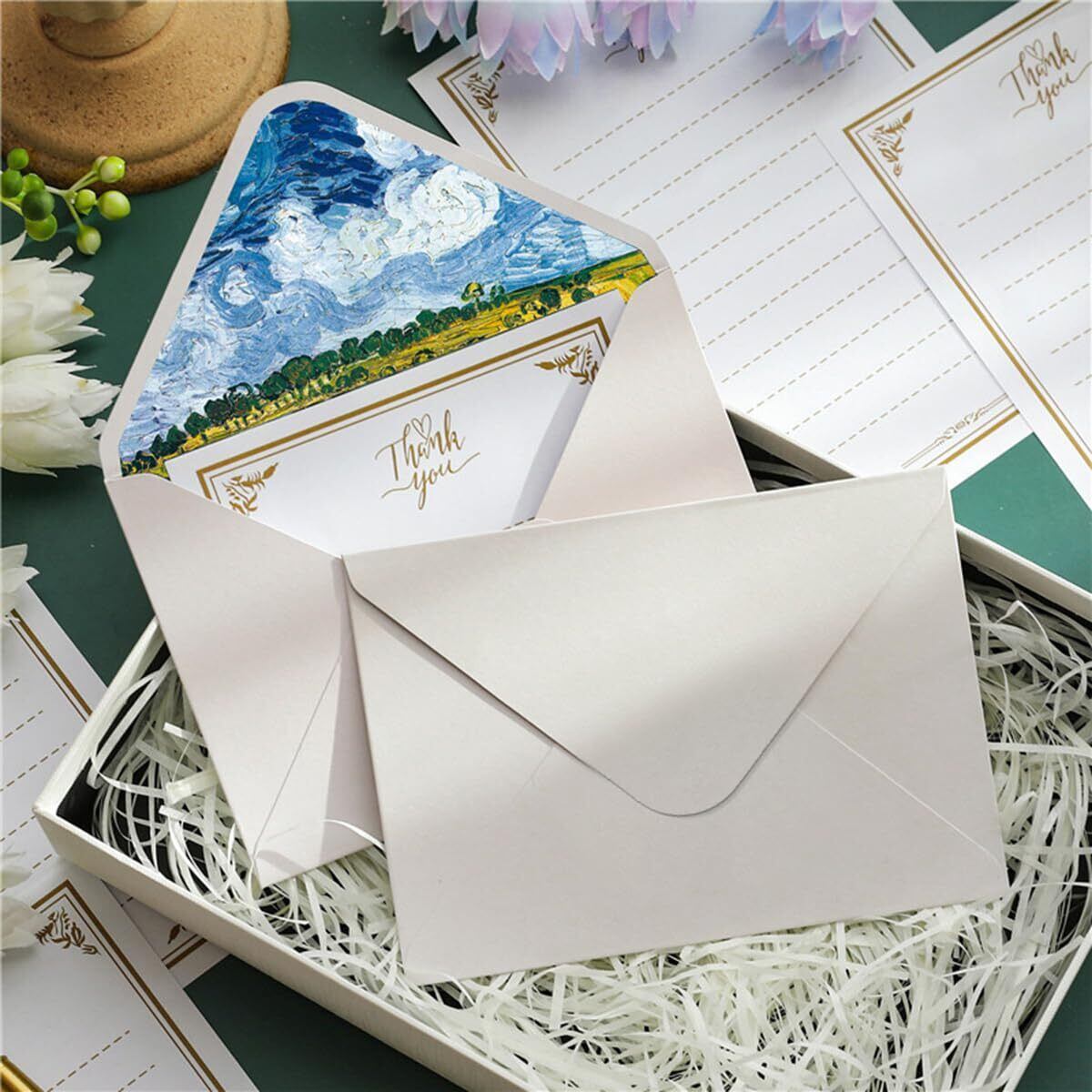 【2022最新】メッセージカード 封筒付き、BetterJonny レターセット 便箋 手紙 8枚 + 封筒 6枚 調手紙 シンプル 絵画 アート 芸術 ラブレター 手書き アンティーク 結ビジネス 招待状 誕生日 結婚式 記念日 母の日 お祝い手紙 挨拶状 お礼状用 お祝いカード、アート(白) | metta