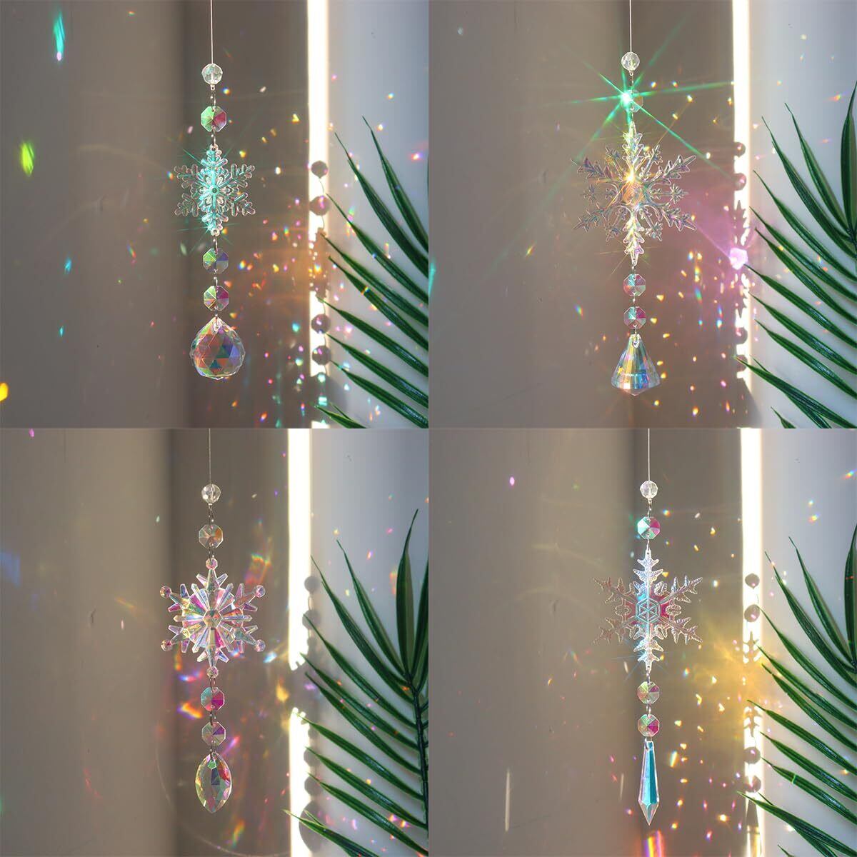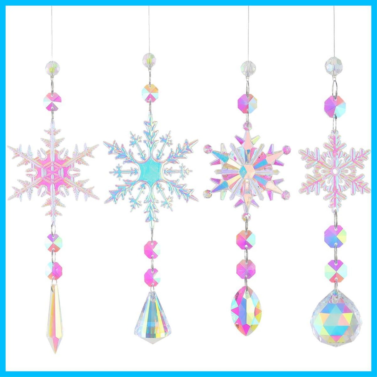【在庫セール】Unikato クリスマスツリー オーナメントセット クリスマスツリー飾り クリスタル オーロラカラー 雪の結晶 飾り吊り下げ 4個セット クリスマスオーナメント 店舗装飾 部屋飾り 透明装飾 クリスマスパーティー飾り 糸付き | metta