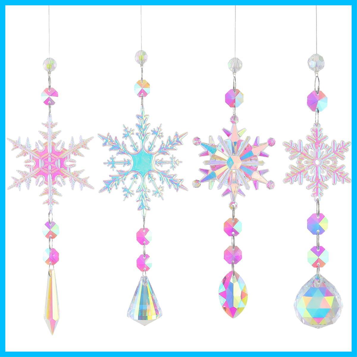Unikato クリスマスツリー オーナメントセット クリスマスツリー飾り クリスタル オーロラカラー 雪の結晶 飾り吊り下げ 4個セット クリスマスオーナメント 店舗装飾 部屋飾り 透明装飾 クリスマスパーティー飾り 糸付き