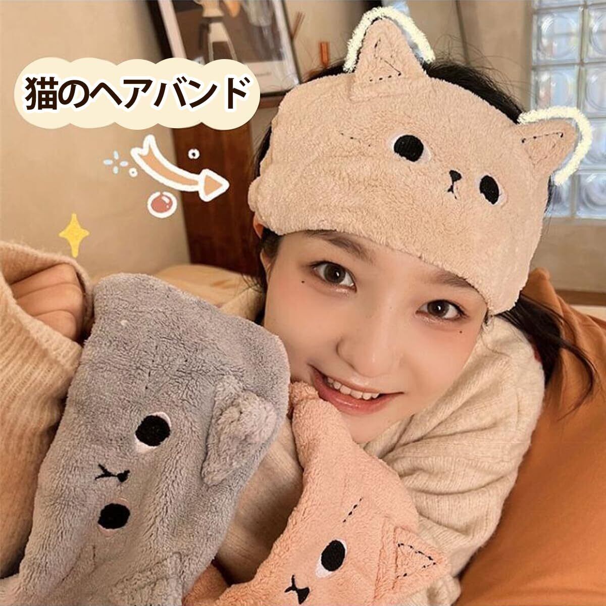 ヘアバンド 洗顔 風呂 ヘアバンド 吸水ヘアバンド 耳 ヘアバンド 猫 ヘアバンド 顔を洗って、化粧して 速乾性 マイクロファイバー (ピンク)