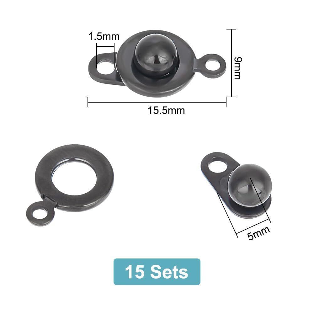 UNICRAFTALE 約15セット 15.5mm ステンレス 留め具 クラスプパーツ スナップクラスプ 押す 黒 ステンレス 留め金 エンドパーツ チェーン留め 接続金具 金属パーツ ブレスレット留め具 ネックレス留め具 アクセサリーパーツ 副資材 ハンドメイド 手芸用品