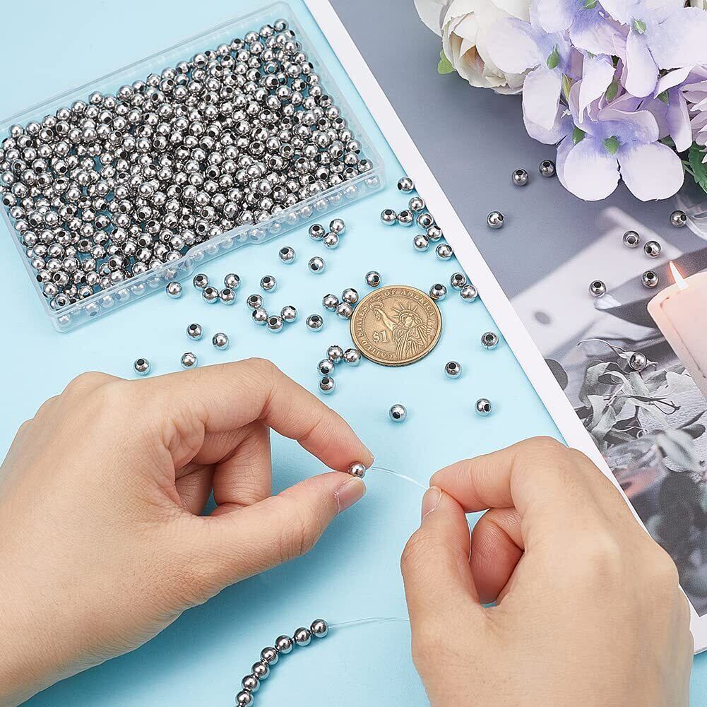 【2022最新】UNICRAFTALE 約500個 ラウンドビーズ 5mm ステンレスビーズ 丸玉 スペーサービーズ メタルビーズ 金属ビーズ 光沢ビーズ ビーズチャーム ブレスレットネックレス用 アクセサリーパーツ ジュエリー作り クラフト用品 手作り素材 DIY | metta