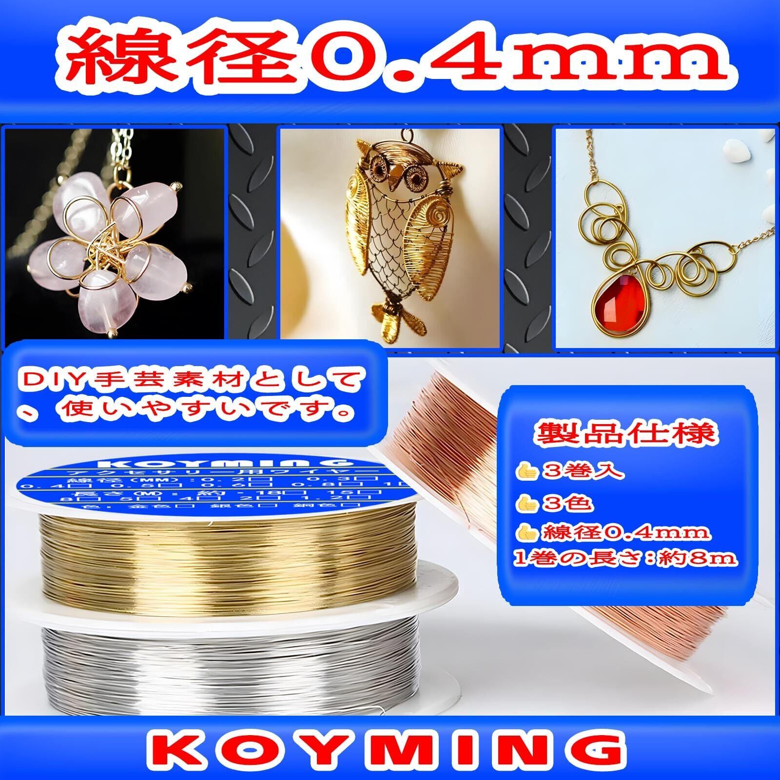 KOYMING アクセサリーワイヤー 3色銅線 線径0.4mm 3巻入 手芸用ワイヤー ジュエリー作り DIY手芸素材【KOYMING(コイミン)正規品】