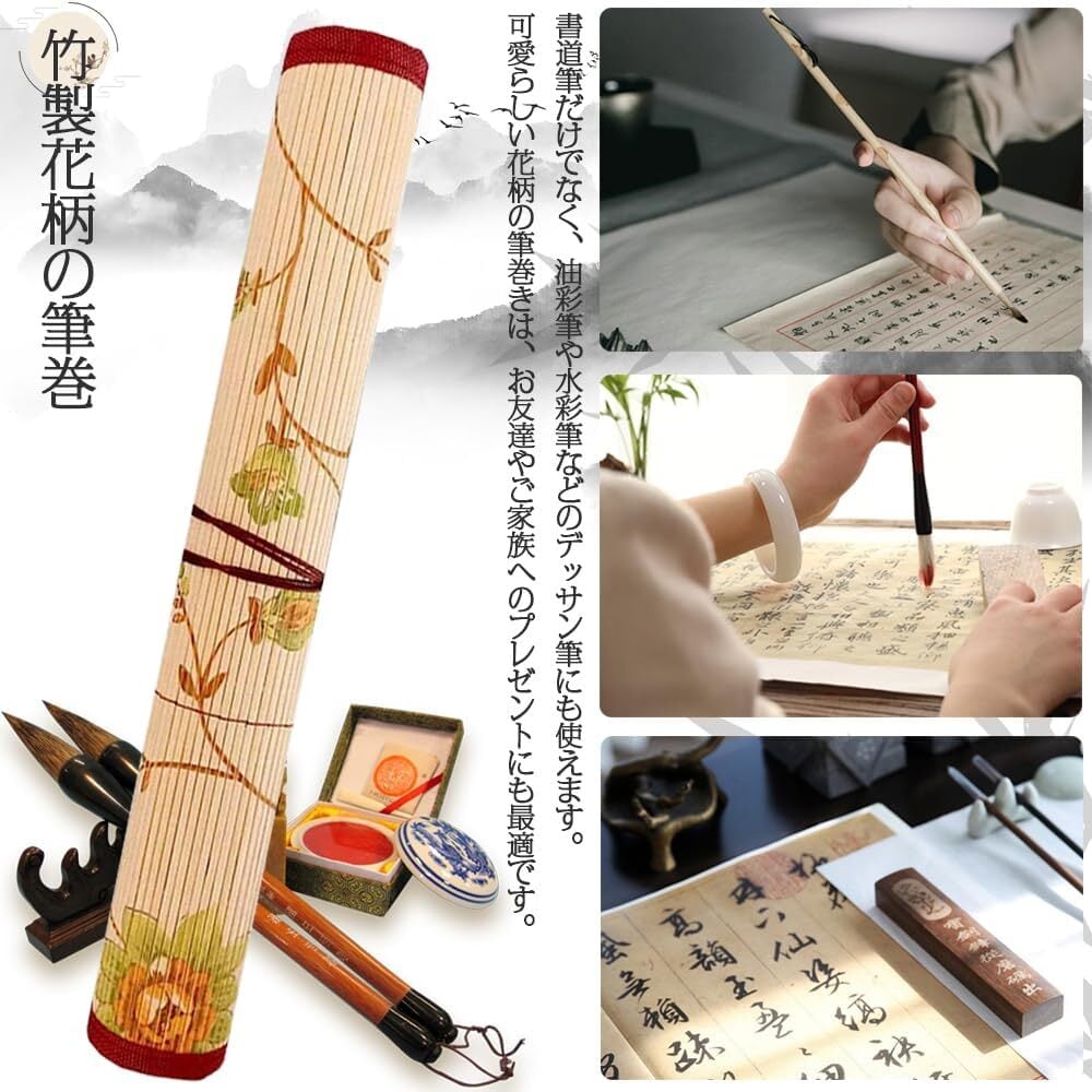 セット内容:竹製花柄の筆巻1本セット;7本の筆を収納可能;サイズ:30CM*26CM(書道筆は付属しておりません。あらかじめご了承ください。モニター環境により色合いが若干異なる場合がございます。あらかじめご了承ください。)