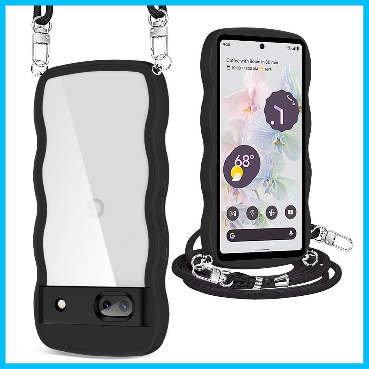Pixel 7A ケース クリア ショルダー ストラップ付き 人気 かわいい 全面保護 ピクセル 7a カバー 透明 スマホケース 首かけ 肩掛け TPU 薄型 軽量 取り外し可能 長さ調整可能 ワイヤレス充電対応(ブラック)