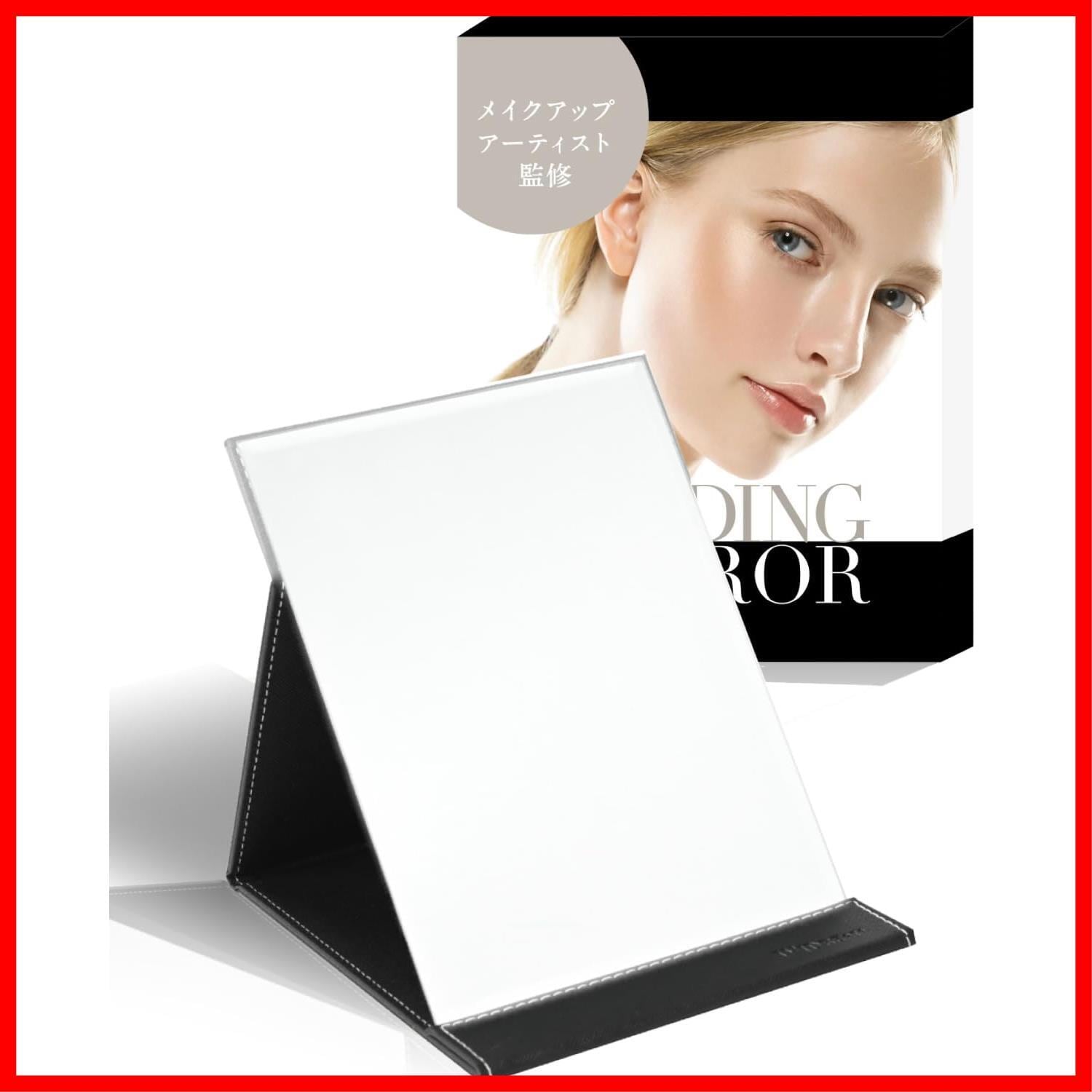 WIDREAM【メイクアップアーティスト監修】角度自在調整&他社より1サイズ大きい鏡面の折りたたみ折立鏡 鏡 卓上鏡 スタンドミラー コンパクトに折りたたんで持ち運びにも◎(役立つメイクminiブック付属) (黒 ML)