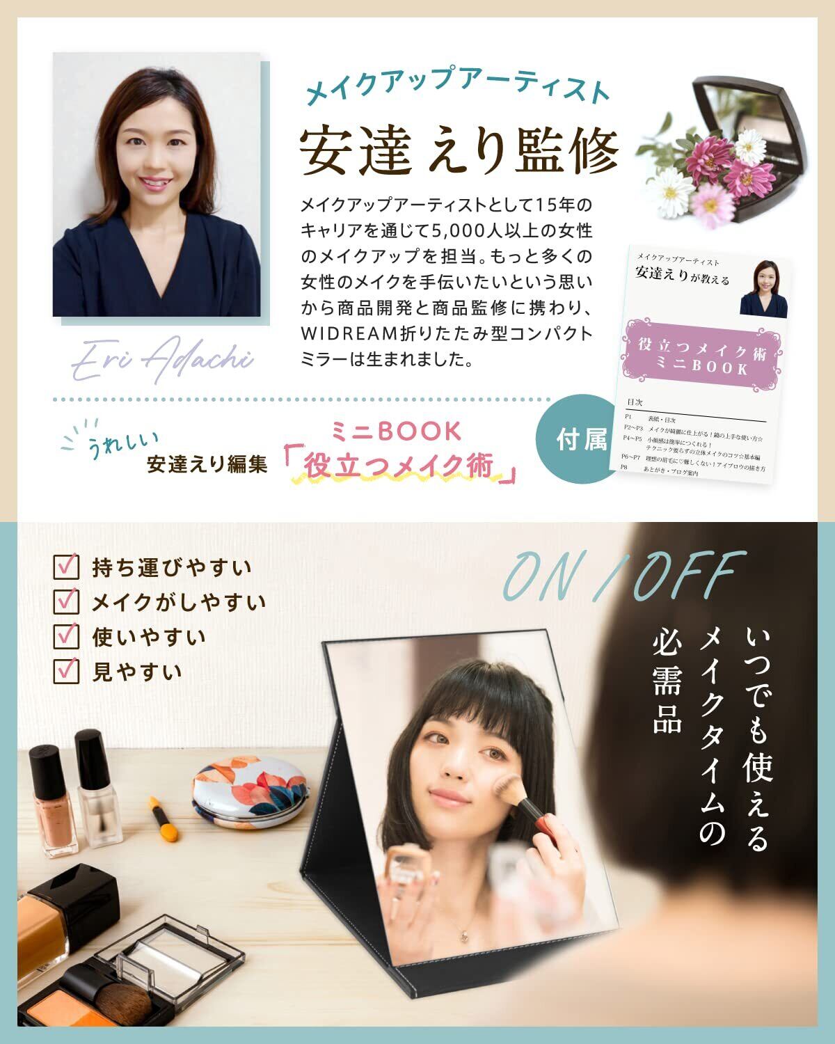 【特価セール】WIDREAM【メイクアップアーティスト監修】角度自在調整&他社より1サイズ大きい鏡面の折りたたみ折立鏡 鏡 卓上鏡 スタンドミラー コンパクトに折りたたんで持ち運びにも◎(役立つメイクminiブック付属) (黒 ML) | metta