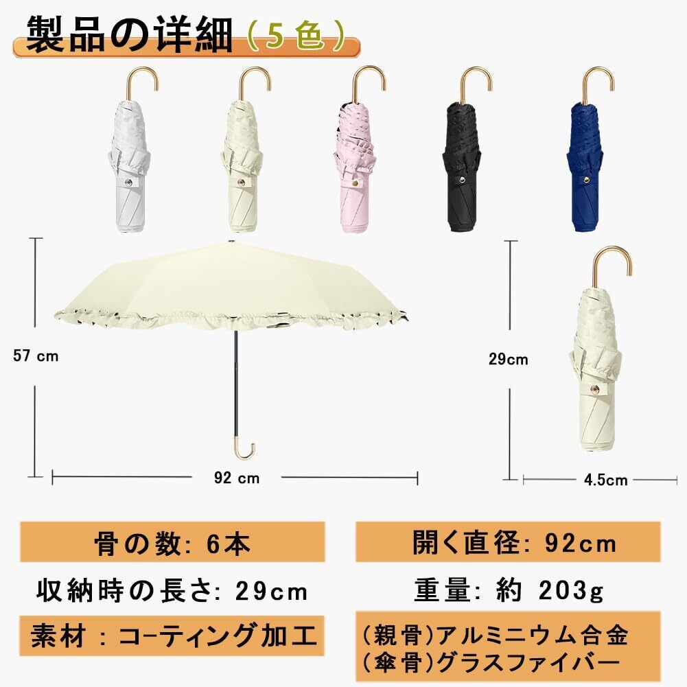 【ユニークなデザイン】無地にレース、刺繍、フリルを合わせたデザイン。、エレガントでモノトーンを失わない。母の日、誕生日、記念日、クリスマス、ホワイトデーギフトや卒業就職祝い、入社祝いの贈り物としてもおすすめです。通勤、通学、スポーツ観戦、夏フェス、イベント、キャンプ、遠足、アウトドア、旅行など用の折りたたみ日傘は、便利な持ち運びに便利なアイテムです。