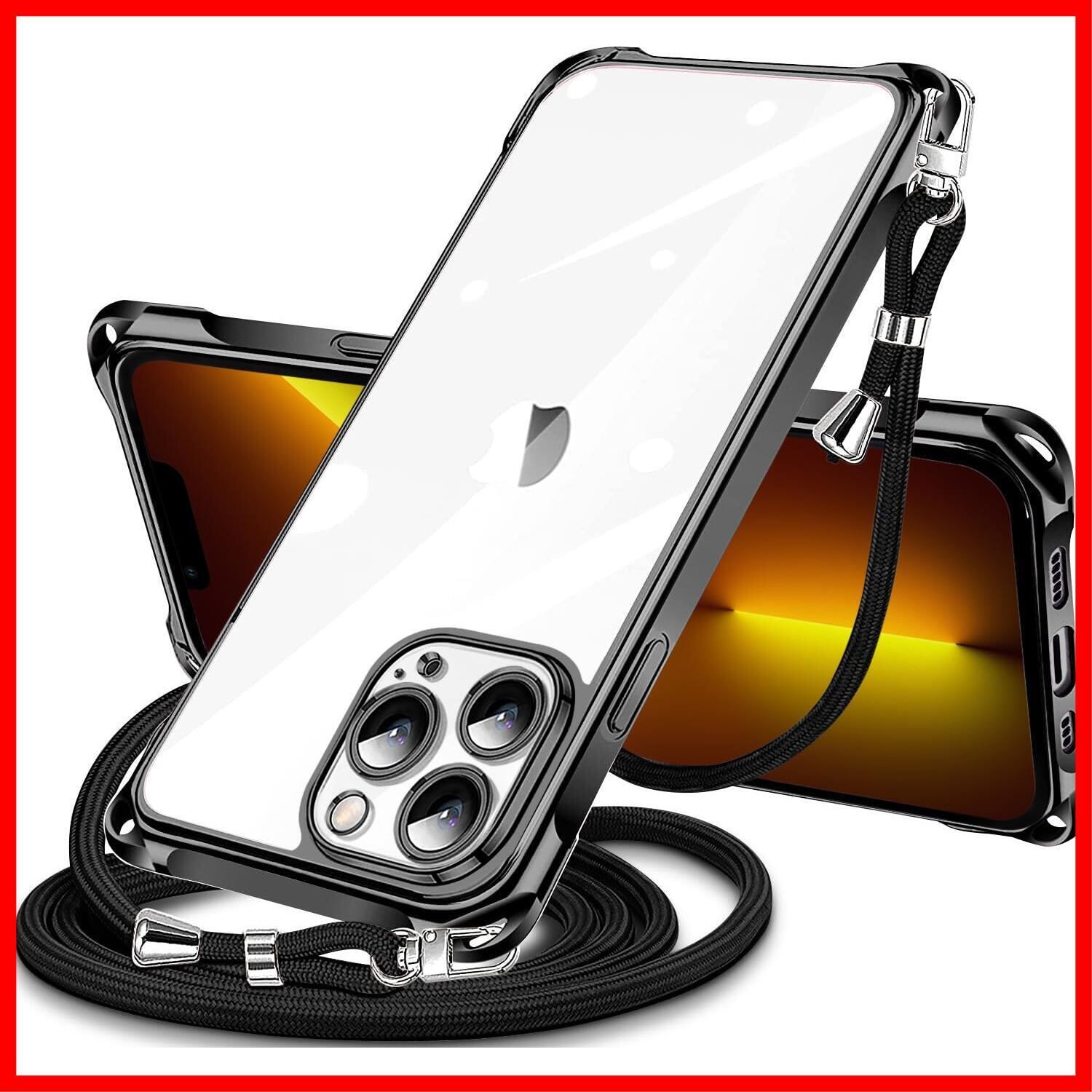 iPhone 13 Pro Max 用 ケース クリア ショルダー iphone13pro max 用 スマホケース アイフォン13ProMax カバー 肩掛け 斜めかけ 縄掛けケース 透明 TPU 薄型 軽量 耐衝撃 紐付き 斜めがけ 織りストラップ付き ネックストラップ ショルダー ケース 縦/横 2WAY 長さ調整可能 取り外し可能 落下防止 紛失防止 ワイヤレス充電対応 (ブラック)