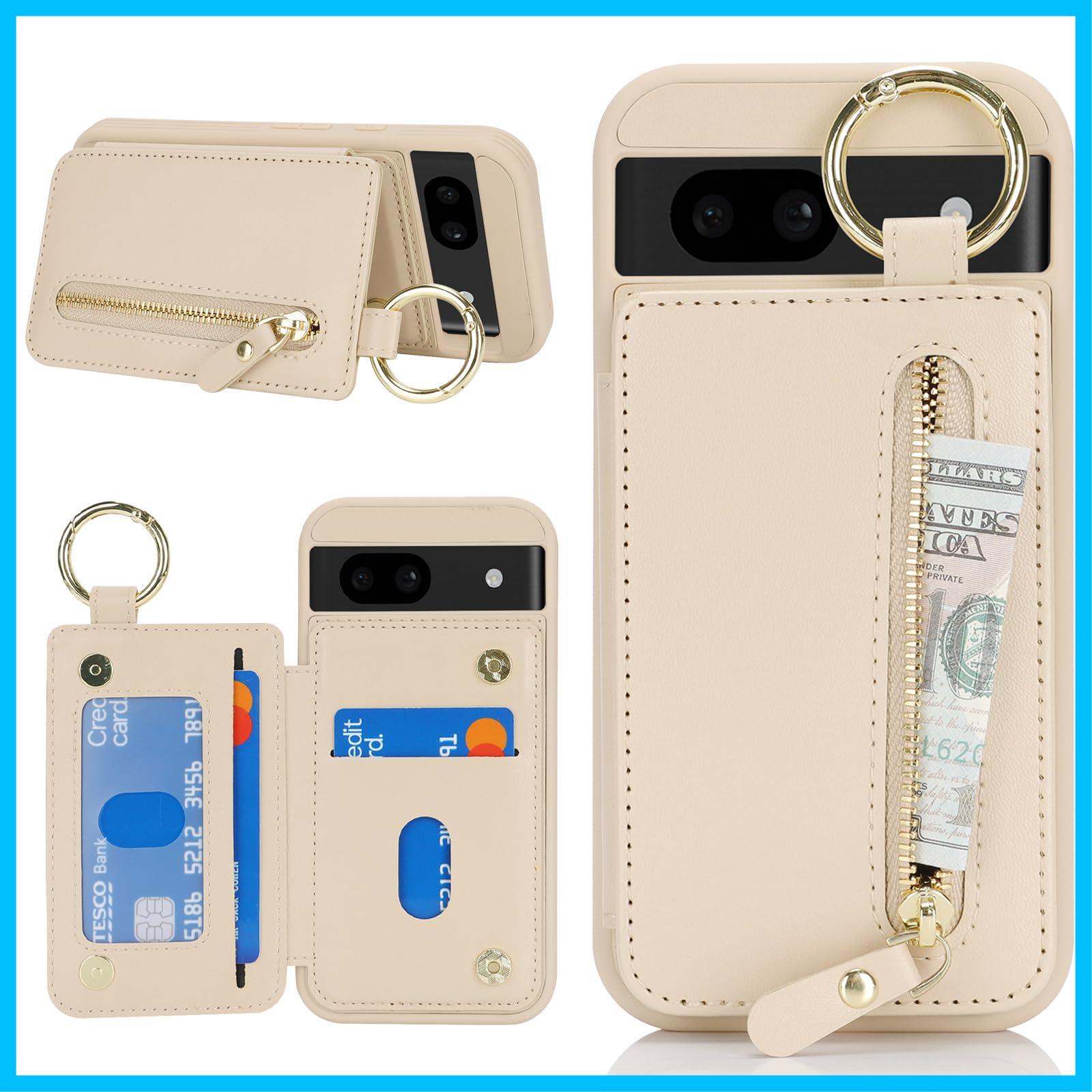 Havaya Pixel 8a ケース Google Pixel 8a ケース カード収納 米軍MIL規格 リング付き キーホルダー キーリング ピクセル8a 耐衝撃 au docomo スタンド機能 SoftBank 財布 フェイクレザー-アプリコット