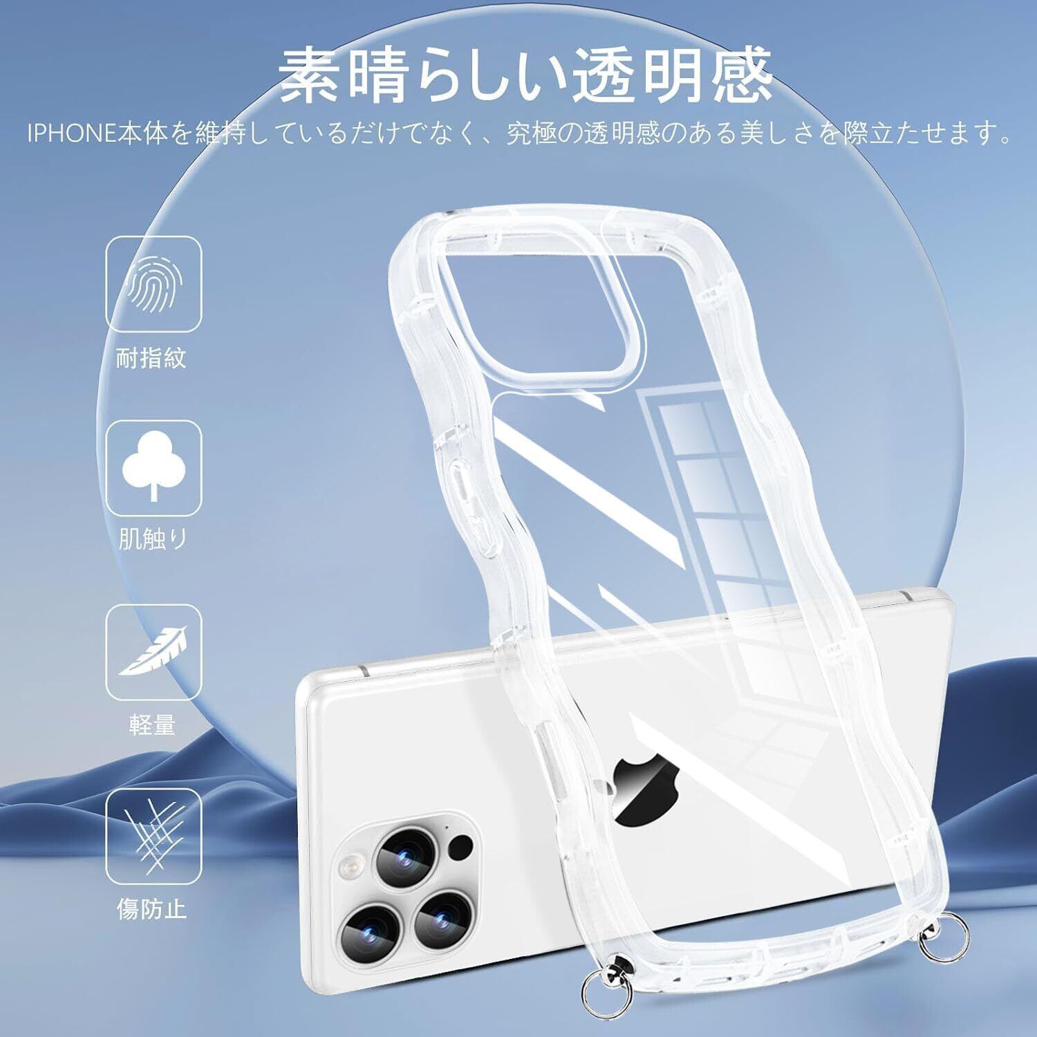 iPhone 16 Pro Max 用 ケース クリア ショルダー 耐衝撃 人気 かわいい アイフォン16 Pro Max 用 カバー 透明 スマホケース 薄型 軽量 首かけ 肩掛け 縄掛けケース ストラップ付き 取り外し可能 長さ調整可能 ワイヤレス充電対応(クリア)
