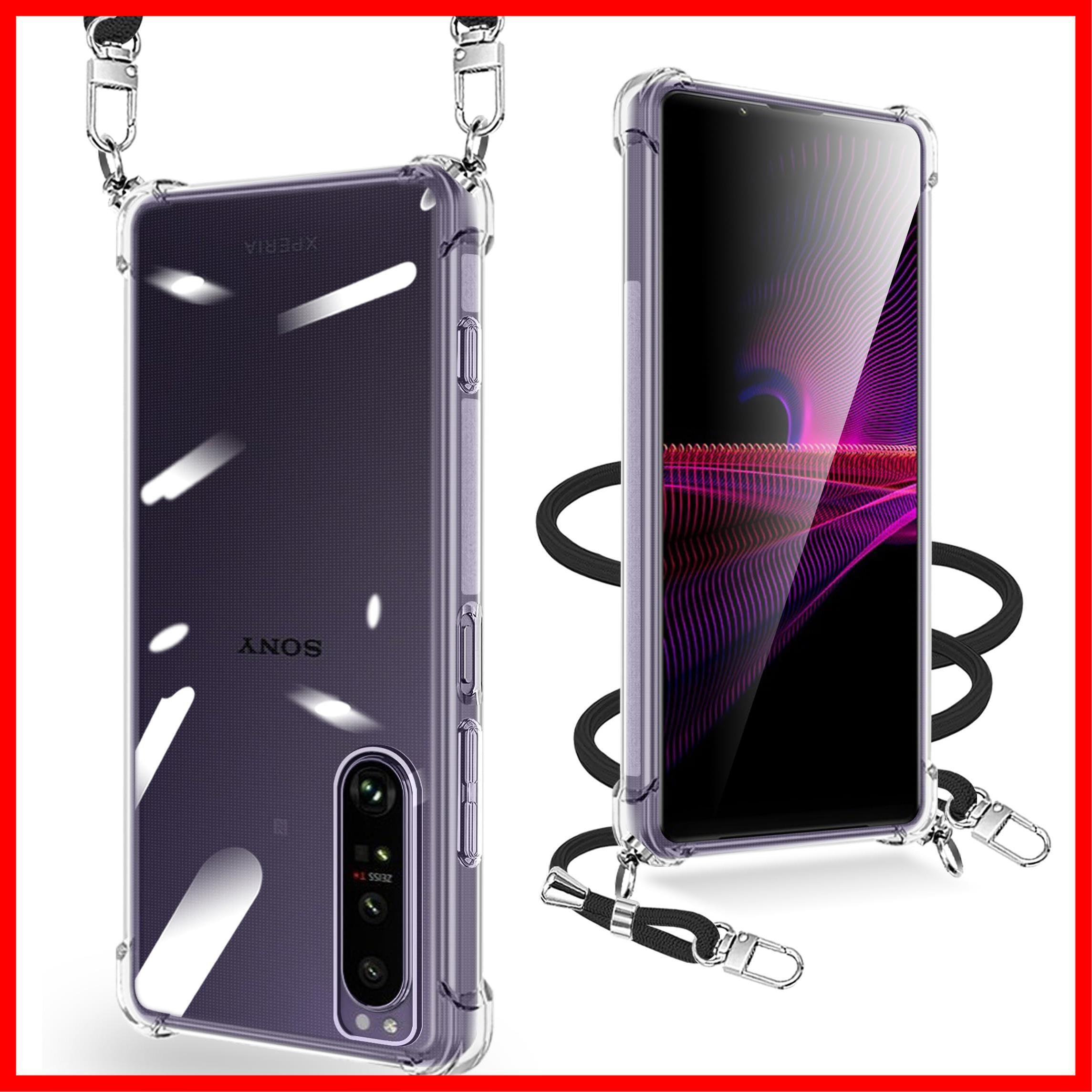 Xperia 1 III ケース クリア ショルダー SO-51B | SOG03 ケース 耐衝撃 全面保護 エクスペリア 1 iii カバー ストラップ付き スマホケース 調節可能 肩掛け 斜めかけ 縄掛けケース 紐付き 薄型 軽量 取り外し可能 落下防止【透明】