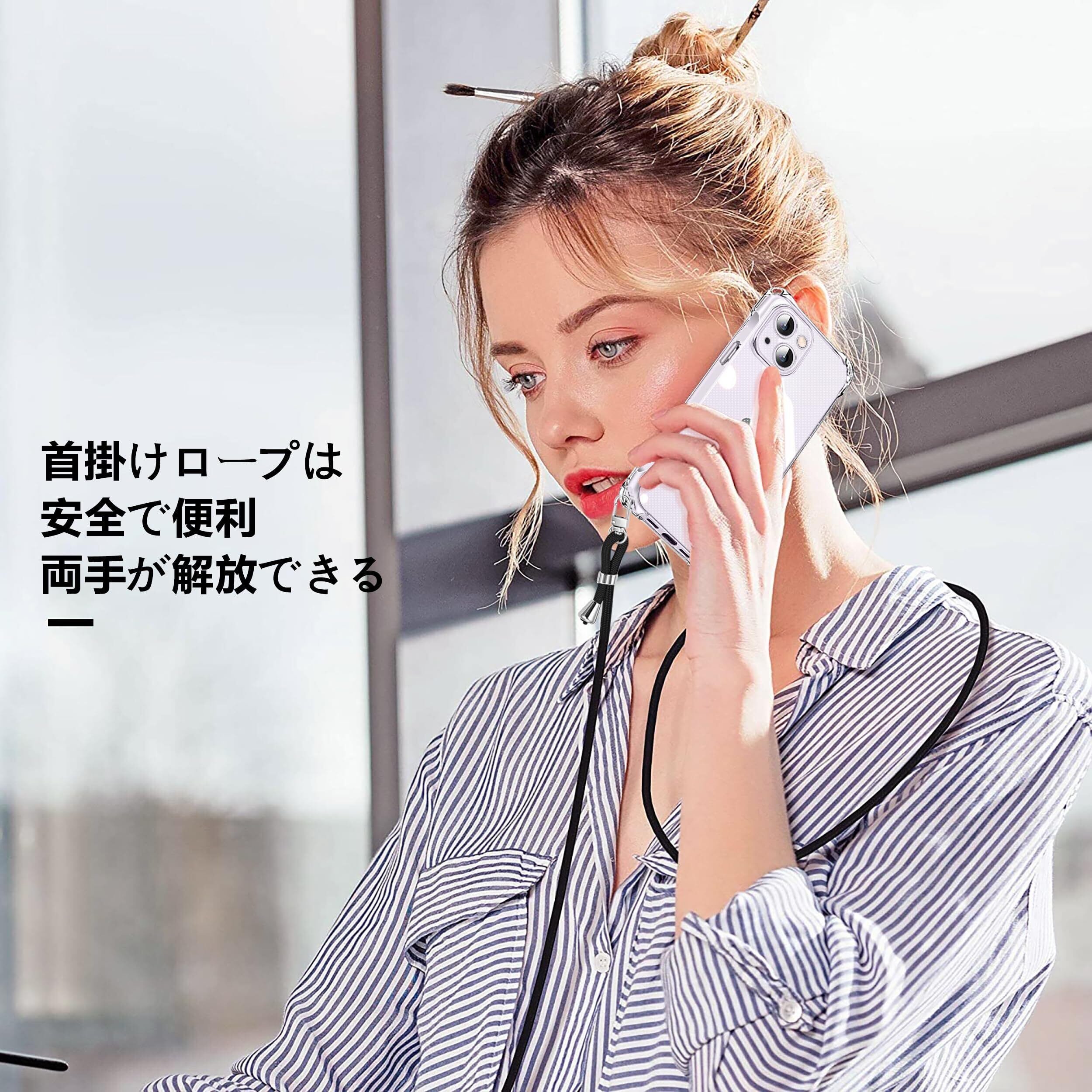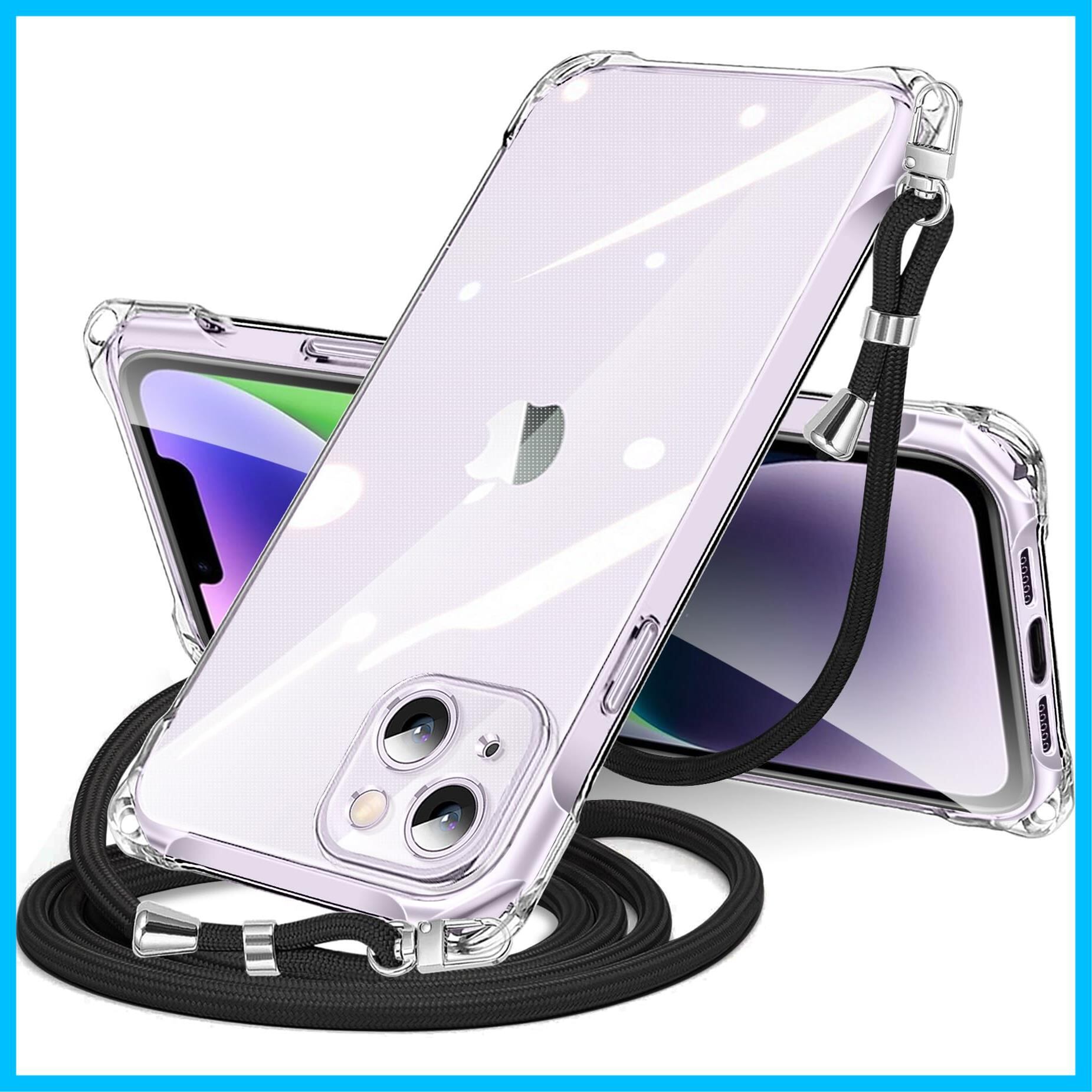 iPhone 14 用 ケース クリア ショルダー iPhone14 用 スマホケース アイフォン14 カバー 肩掛け 斜めかけ 縄掛けケース 透明 薄型 軽量 耐衝撃 TPU ストラップ付き 携帯ケース 紐付き 斜めがけ 織りストラップ付き ネックストラップ ショルダー ケース 縦/横 2WAY 長さ調整可能 取り外し可能 落下防止 紛失防止 ワイヤレス充電対応 (クリア)