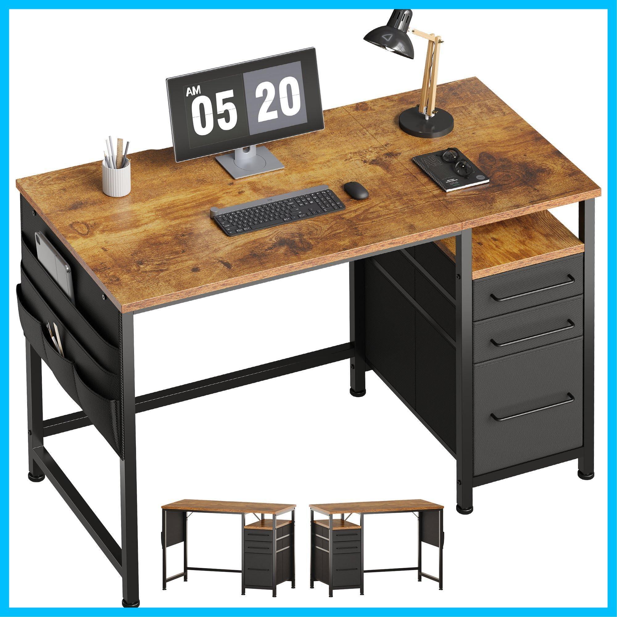 Maihail パソコンデスク引き出し付き 学習机 pcデスク 幅100cm ×奥行45cm ゲーミングデスク左右入替可 在宅ワーク デスク オフィスデスク 勉強机 ビンテージ