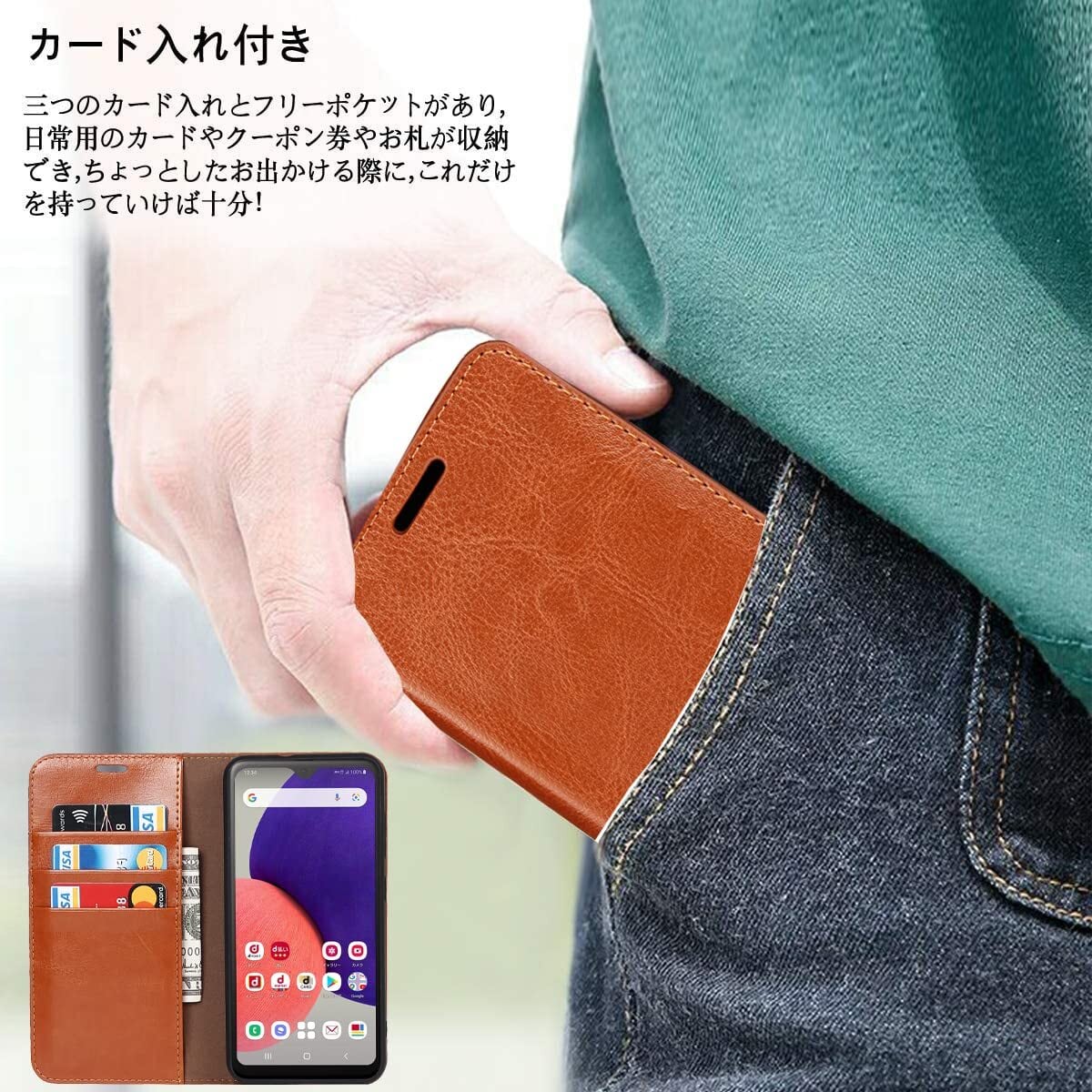 Galaxy A22 5G ケース 手帳型 【マグネット無し】 日本版 SC-56B ケース docomo 対応 サムスン ギャラクシー A22 5G カバー A22 ケース galaxy SC56B ケース A225G スマホケース A22ケース 手帳型 適用 CASE 【iCoverCase】 マグネットなし スタンド機能 光沢加工 牛革 財布型 カード入れ ライトブラウン