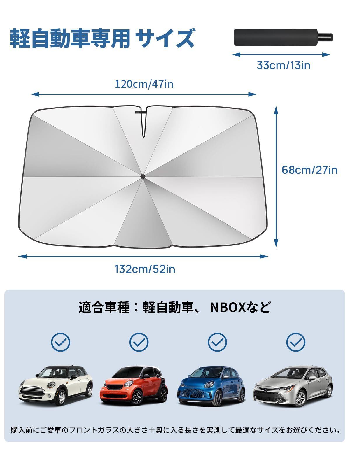【サイズ】最長辺132cm*最短辺120cm*幅68cm ※こちらが軽自動車専用サイズで、ほとんどの軽自動車に対応できます。車種の個体差によっては、適合の車種でもサイズが合わない場合がありますが、購入前にご愛車のフロントガラスのサイズをご確認ください※