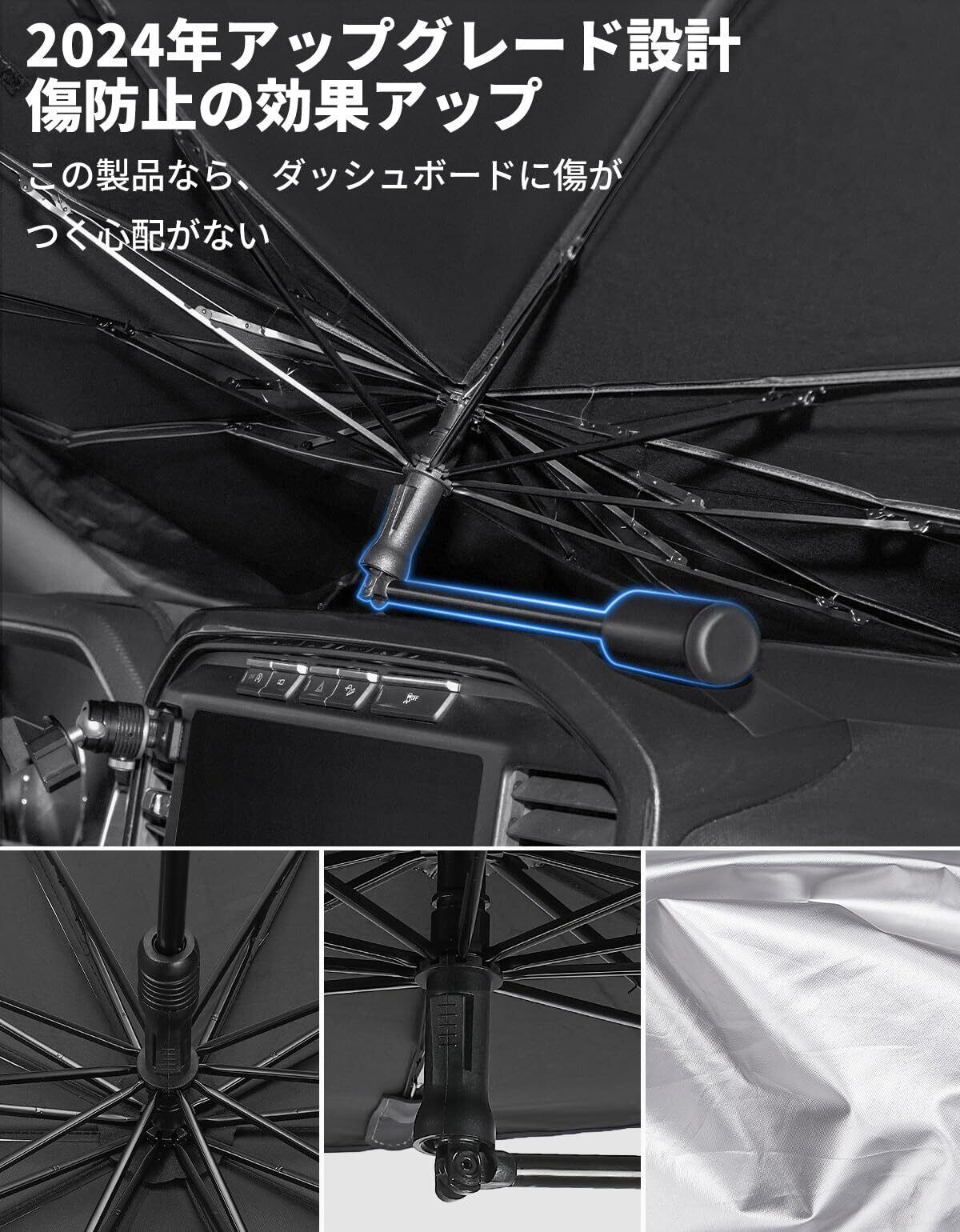 【2024最新版】360°曲がる傘柄・アップグレード設計の車用サンシェードは、通常の傘型サンシェードとは異なり、傘柄とダッシュボードの接触を最小限に抑え、傷のリスクが大幅に軽減されます。はじきの部分は、ネジ式インターフェイスのデザインを採用し、はじきカバーを外すと、傘柄を360°自由な角度に曲げることができ、愛車のダッシュボードをより良く保護し、傷から守ります。