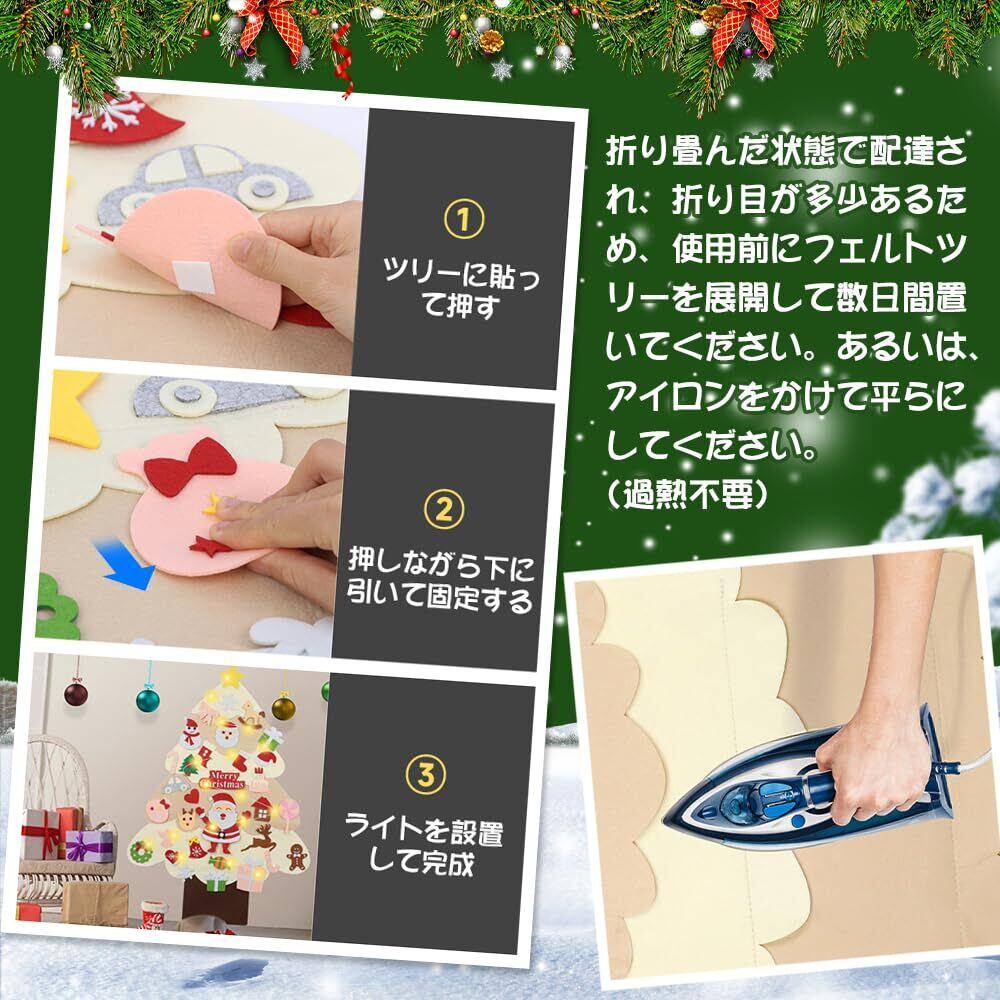 【高品質フェルト生地】クリスマスツリー本体、パーツと収納バッグも厚みのある安心フェルトから作られ、軽量で持ち運び便利。安全無味で手触りが柔かで子供でも安心して使えます。耐久性が優れて繰り返し使用することができます。
