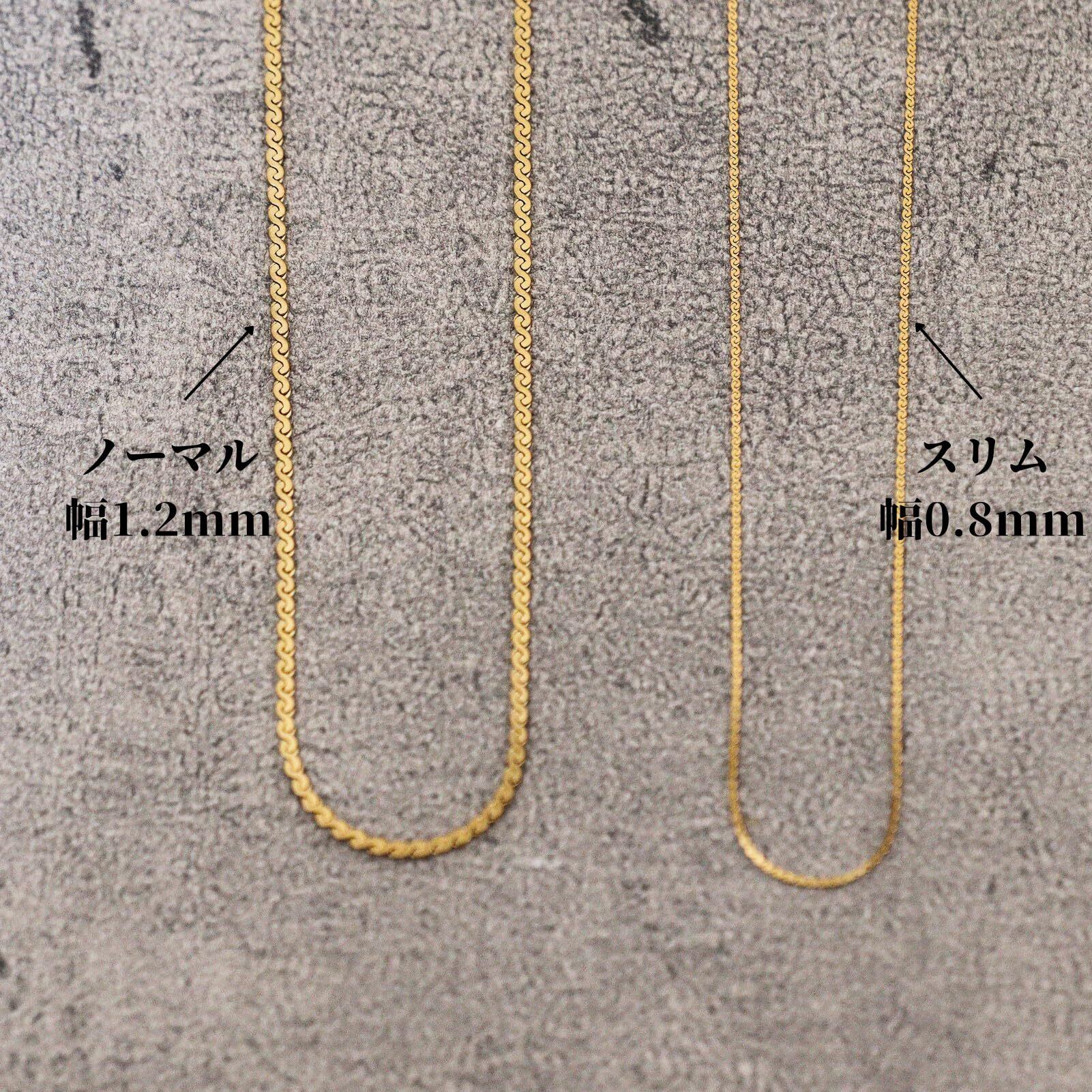 0.8mmと1.2mmの華奢チェーンネックレス。S字を組み合わせたようなデザインが特徴。