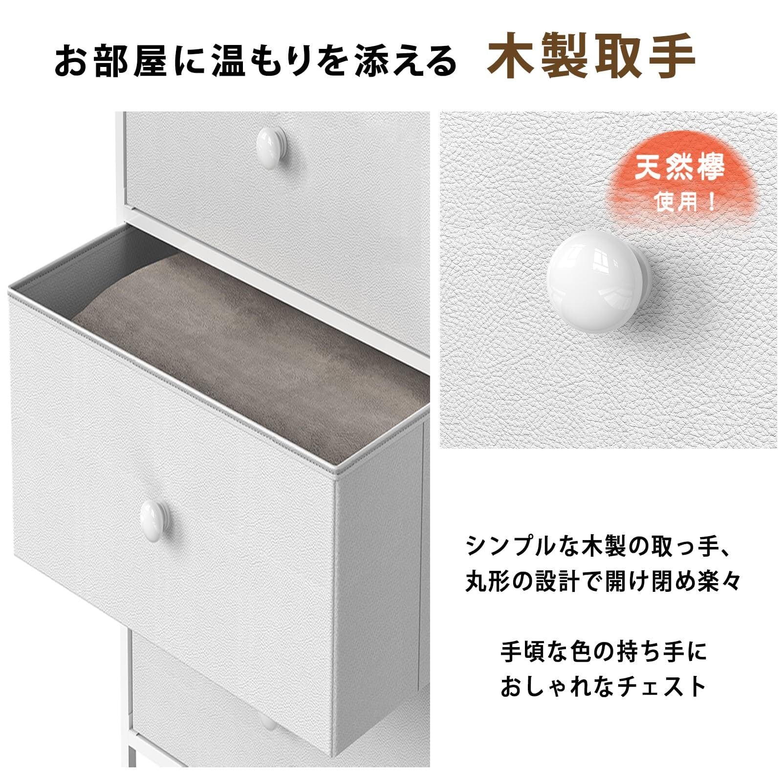【防水性抜群な皮革素材使用】タンスの引き出しは高級な皮革素材を使用しており、防水性と共に汚れた際に拭くだけでお手入れができます。