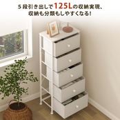 【在庫処分】REAHOME チェスト 5段 タンス 収納 衣装ケース 大容量 ハイチェスト おしゃれ 衣類収納ボックス 引き出し ランドリー収納 木製天板付き 脱衣所収納 ファブリックチェスト 転倒防止 【幅45×奥行30×高さ112cm】(ホワイト) | metta