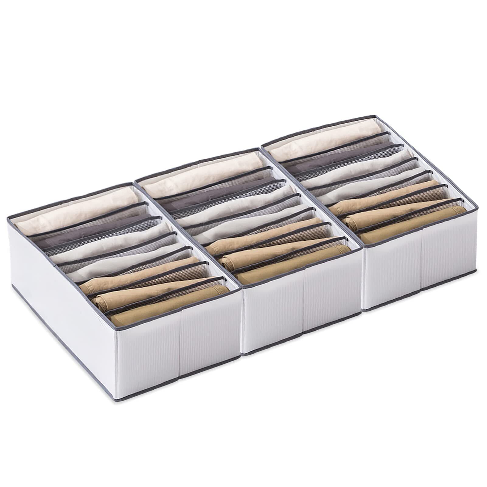 【2022最新】QUIENKITCH 引き出し 収納 折り畳み 引き出し仕切り 7マス 3個セット【より丈夫ーPVC生地+ppハードボード】折りたたみ式 収納ボックス 衣装ケース 押入れ用 仕切りボックス 衣装収納ケース グリッド収納 グリッド かご 大容量 通気性 水洗い可能 ジーンズ、ズボン、ジーンズ収納(グレー) | metta