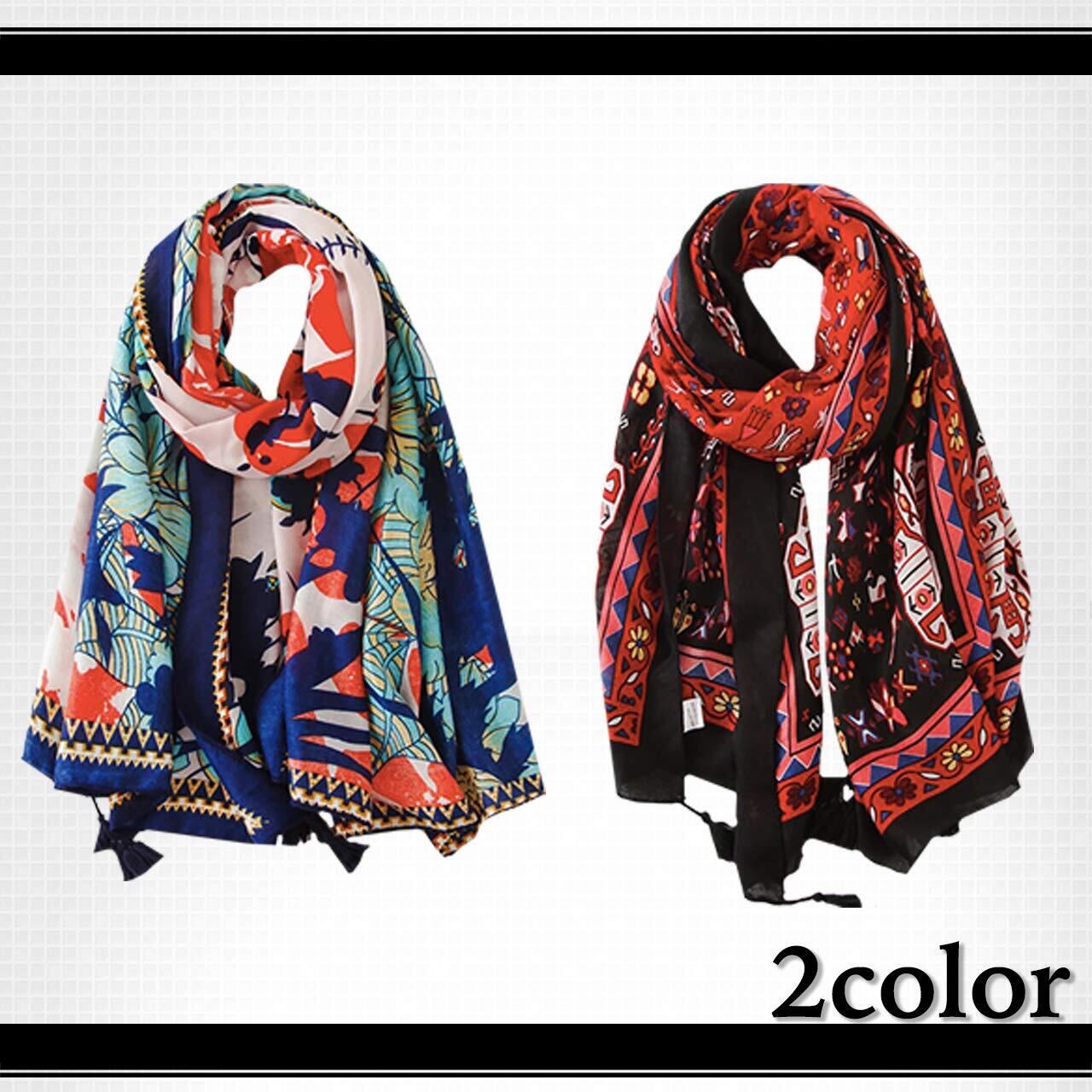 WHITE FANG(ホワイトファング) ストール スカーフ 花柄 フラワー 春夏 綿麻 大判 アフガン カジュアル レディース MA091
