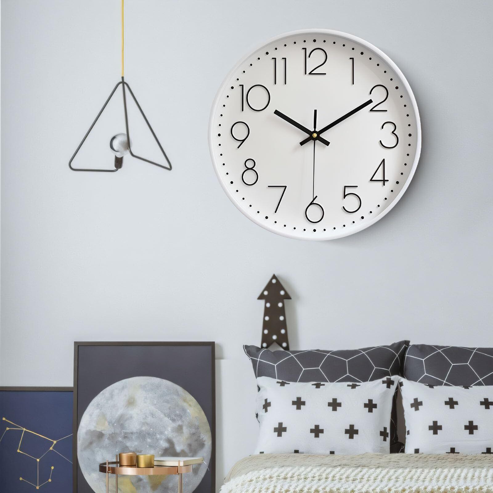 【Oblivi】壁掛け時計 静音連続秒針 音ゼロ 30cm 非電波 北欧風 防塵ガラス リビング/寝室/子供部屋用 電池別売(ホワイト)