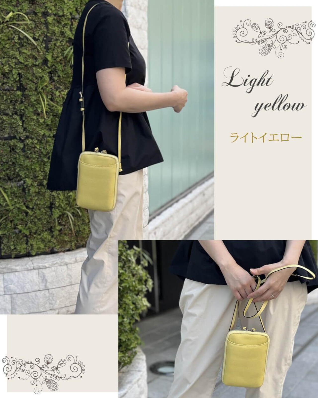 ブランドバッグで使用される、柔らかい仔牛の革「トゴ革」を使用。類似商品とは違う上質なレザーでスマホショルダーを作りました。 表面に光沢がある様な良くある牛革では無く、「さらりとした上品でマットな質感」の牛革・本革を採用・「くすみ系」を中心におとな可愛い8色ご用意 グレージュ・・ややくすんだ淡いベージュモカブラウン・・カフェオレの様なスモーキーな茶色ライトイエロー・・淡く明るい黄色。差し色に使えるきれい系ピンクベージュ・・くすんだパウダーピンク。可愛すぎない、年齢を気にせずにお使い頂る色。アイリスパープル・・ラベンダー・ライラック・藤色 サックスブルー・・やや緑がかった青。緑系好き・青系好き・どちらにもおすすめ出来る、他の人と被らなそうな、ありそうで見かけない 孔雀青/ピーコックブルークロデハナイ・・限りなく黒に近い濃紺。でもよく見ると「黒ではない」所が、さりげないおしゃれなのです。男性への贈り物・ギフトにもオススメ。メンズ・レディースを問わない、引き締めカラーの万能色チャコールグレー・・黒に近いグレーではなく、ややブラウン寄りの灰色。トープ系の人気色